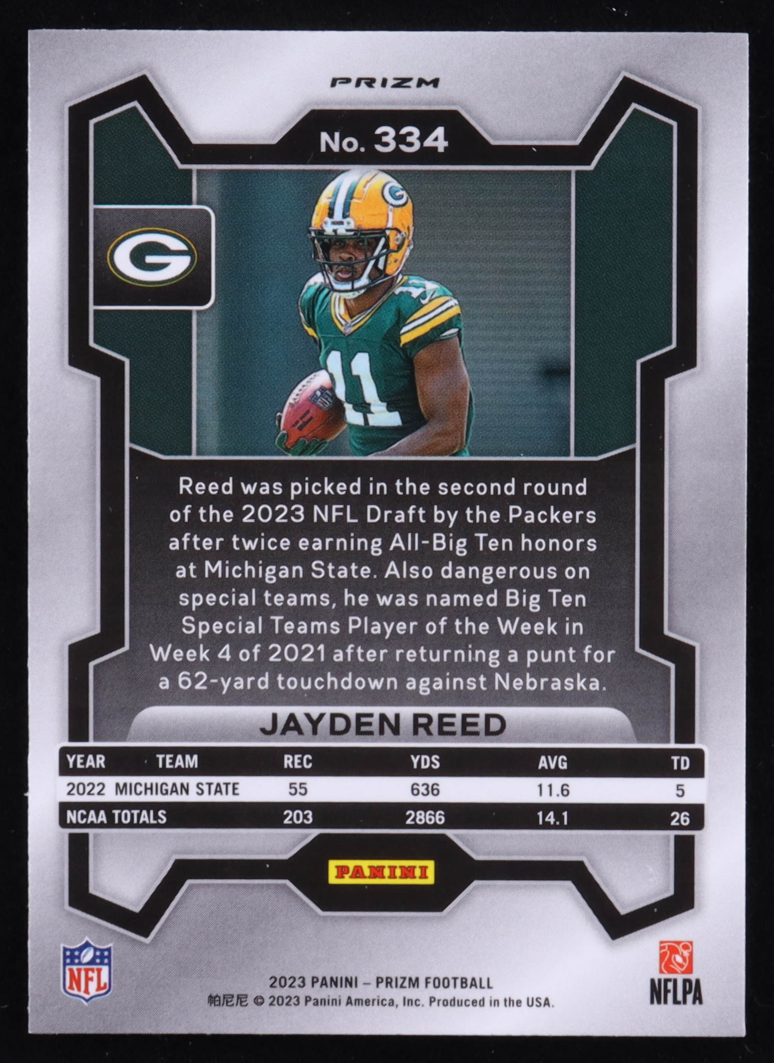 Jayden Reed 2023 Panini Prizm Prizms Neon Green Pulsar #334 RC