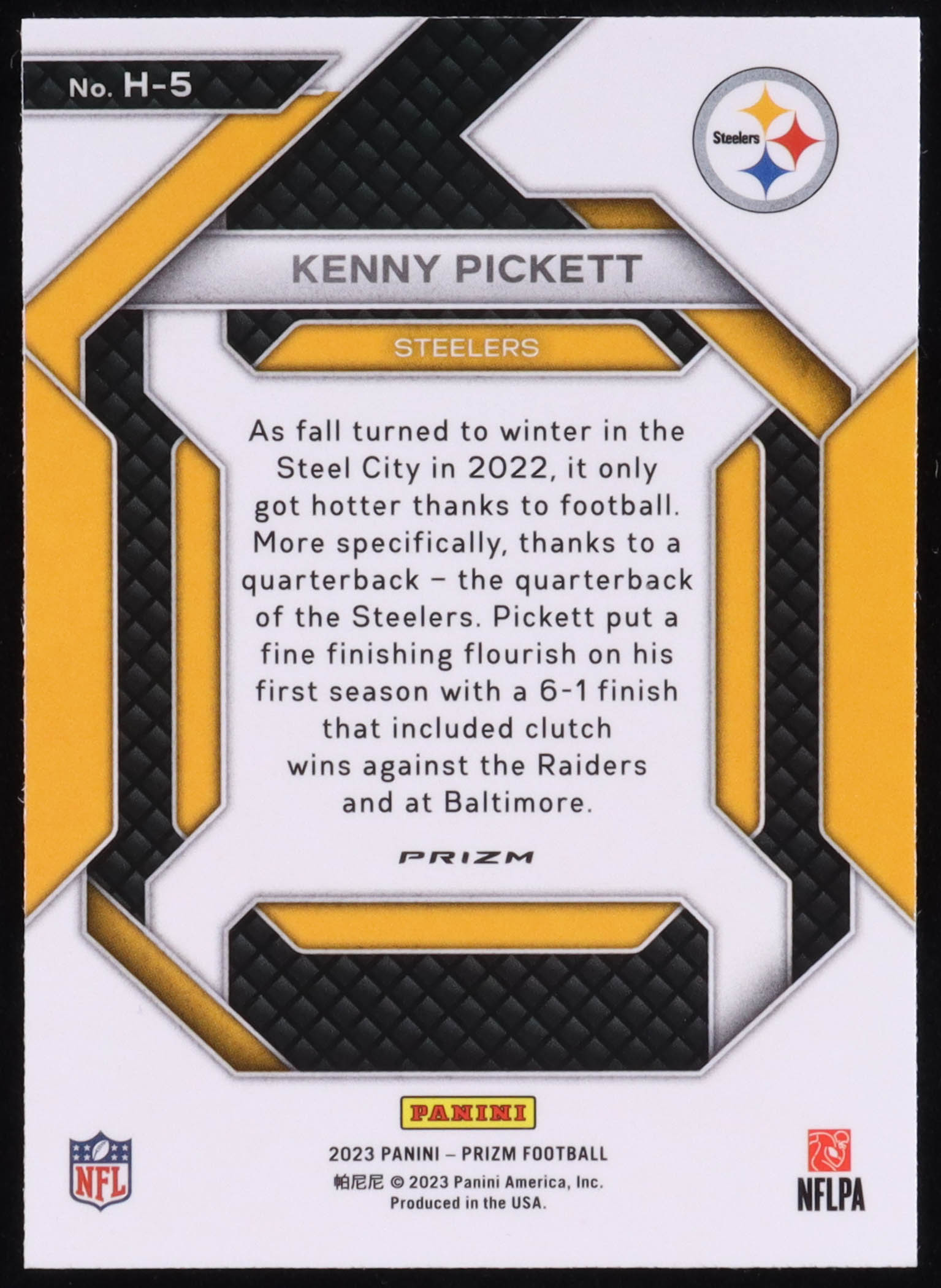 Please see photos for more details regarding the condition of the card (Pittsburgh Steelers).