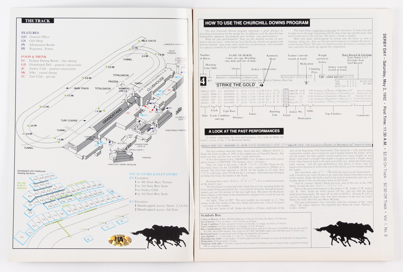 Official Kentucky Derby Program dated May 2, 1992 has been hand-signed in blue felt-tip pen by Pat Day.