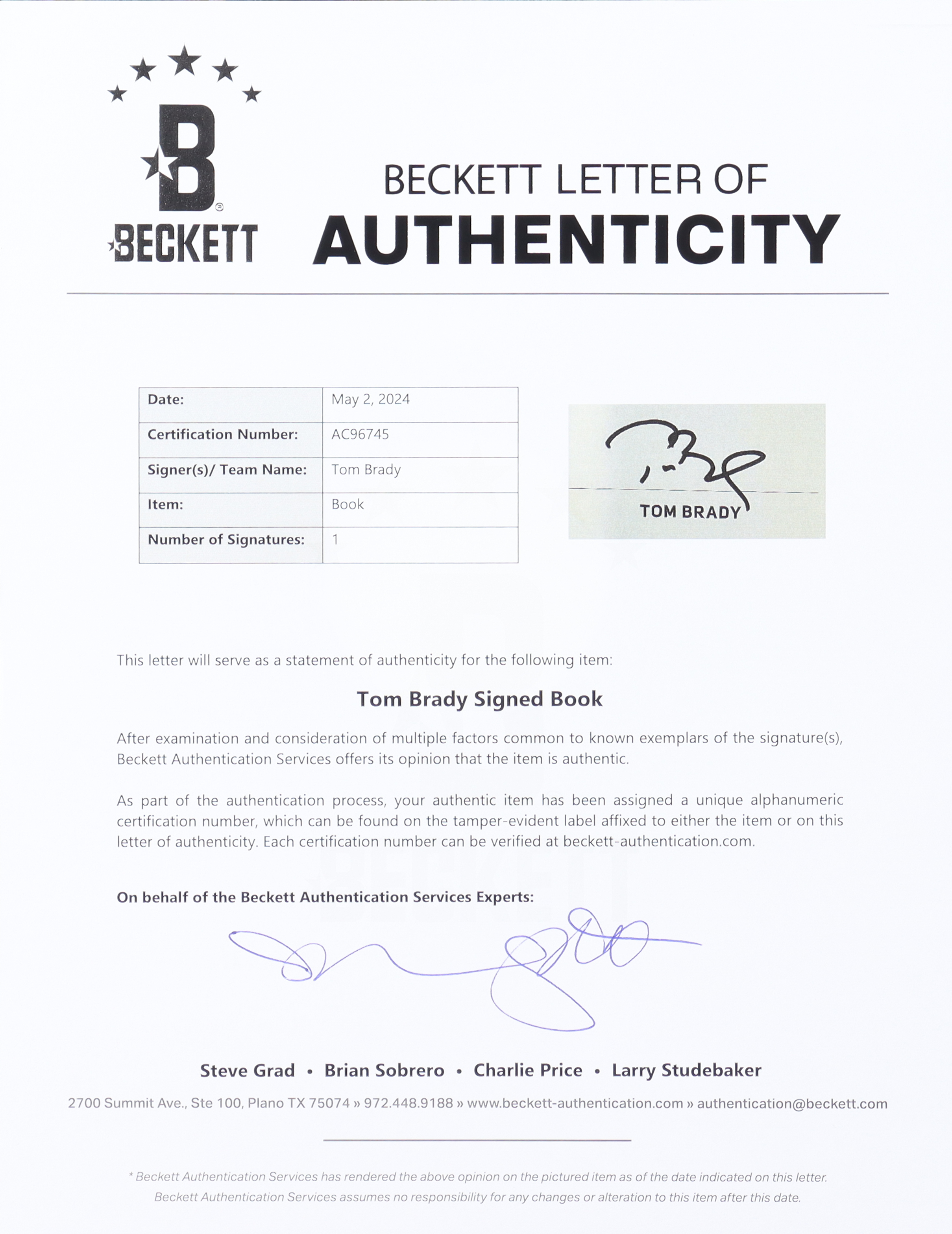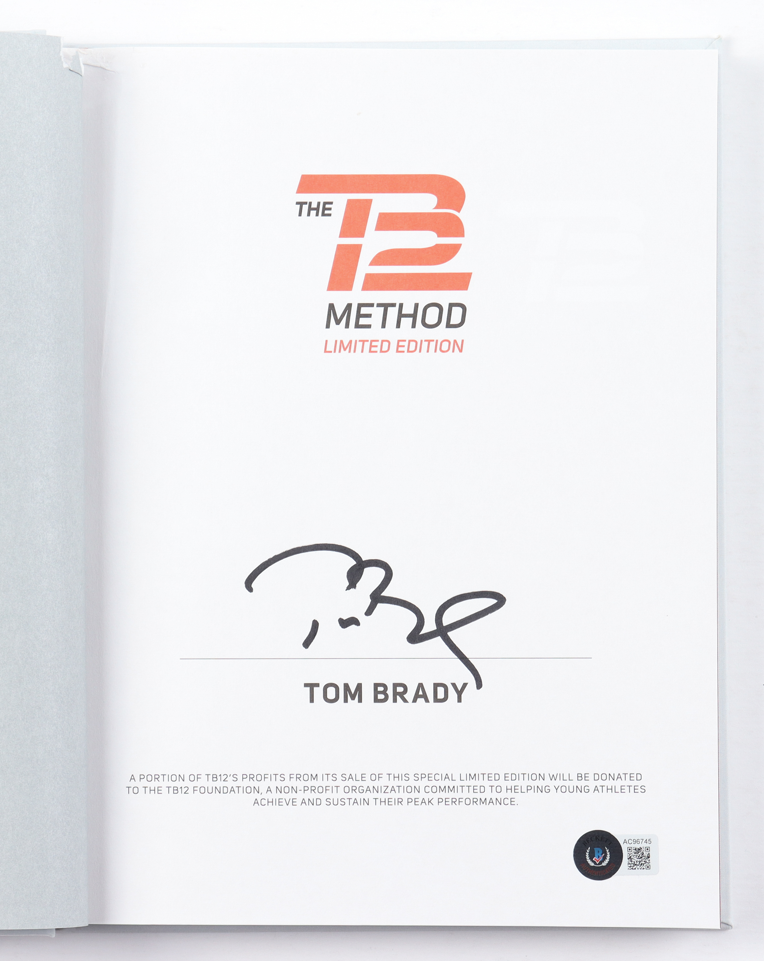 "The TB12 Method Limited Edition" hardcover book has been hand-signed on the inside title page by legendary quarterback, Tom Brady! Please note, some of the corners in the book show wear.
