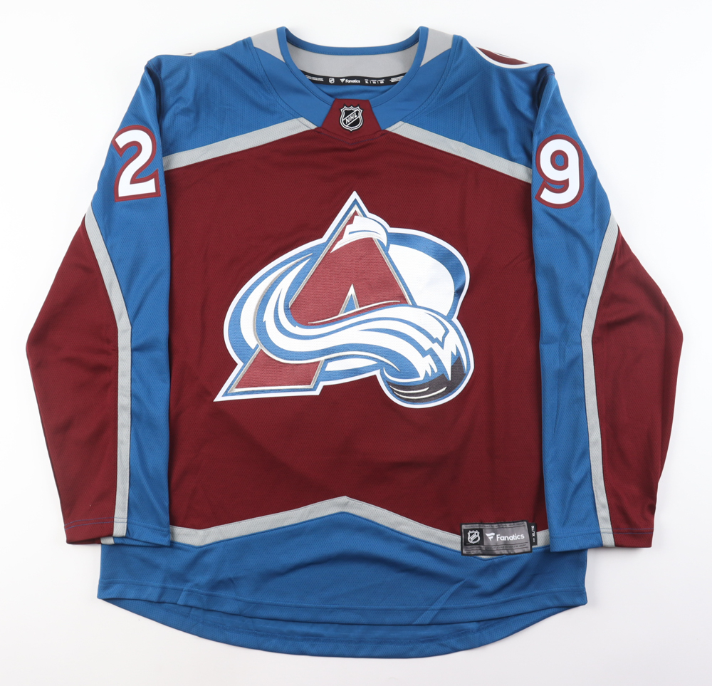 Fanatics jersey with everything pressed on, size XL. Hand-signed by Nathan MacKinnon (Colorado Avalanche).