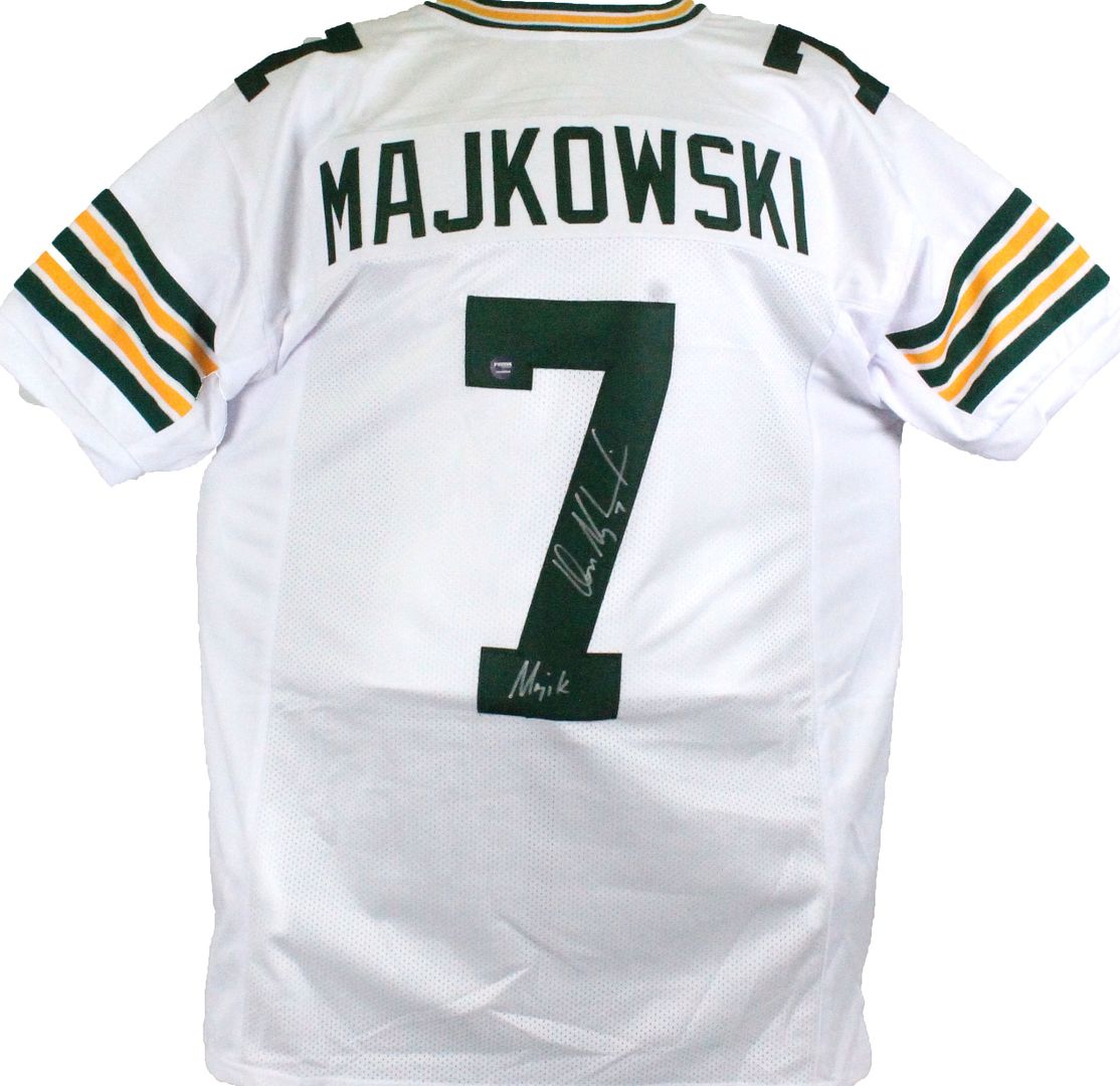 Jersey with everything sewn on, size XL. Hand-signed and inscribed by Don Majkowski.