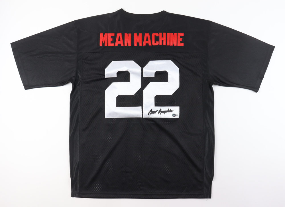 Custom jersey. Everything is sewn on, size 52. Hand-signed by Burt Reynolds (Paul Crewe). Please note, the signature has bled, stains on the numbers, and glue is visible through the front and reverse numbers.