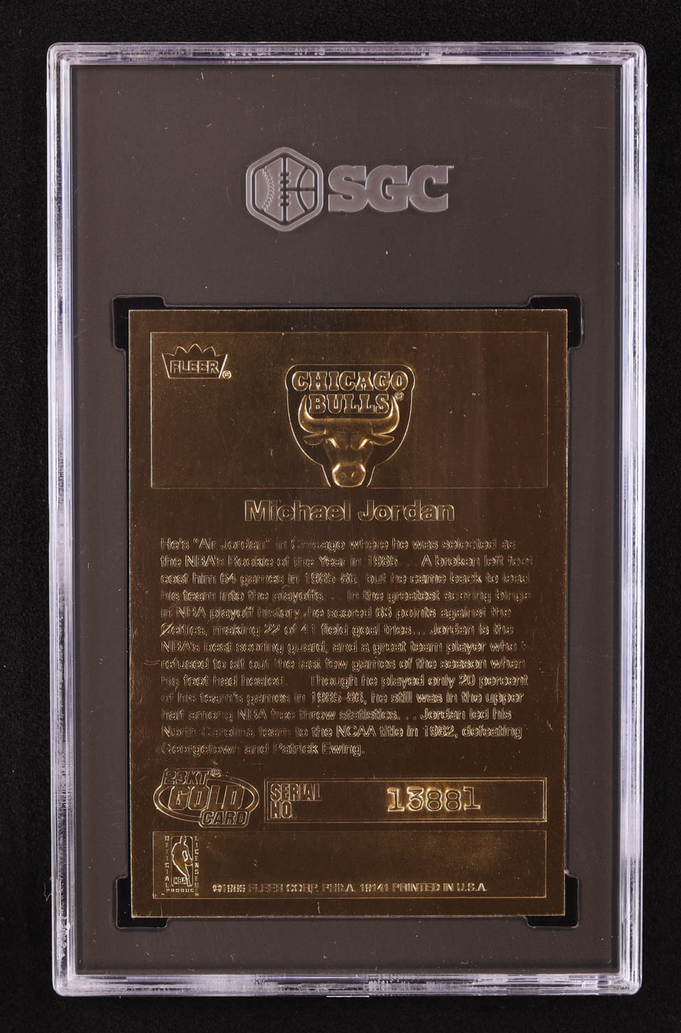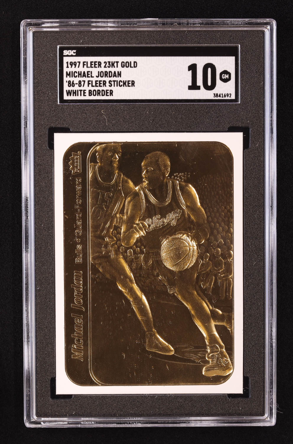 Michael Jordan 1997 Fleer 23KT Gold White Border / '86-87 Fleer Sticker (SGC 10)