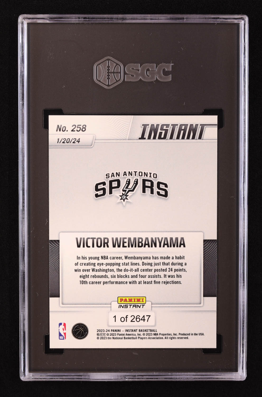 Victor Wembanyama 2023-24 Panini Instant #258 RC (SGC 10)