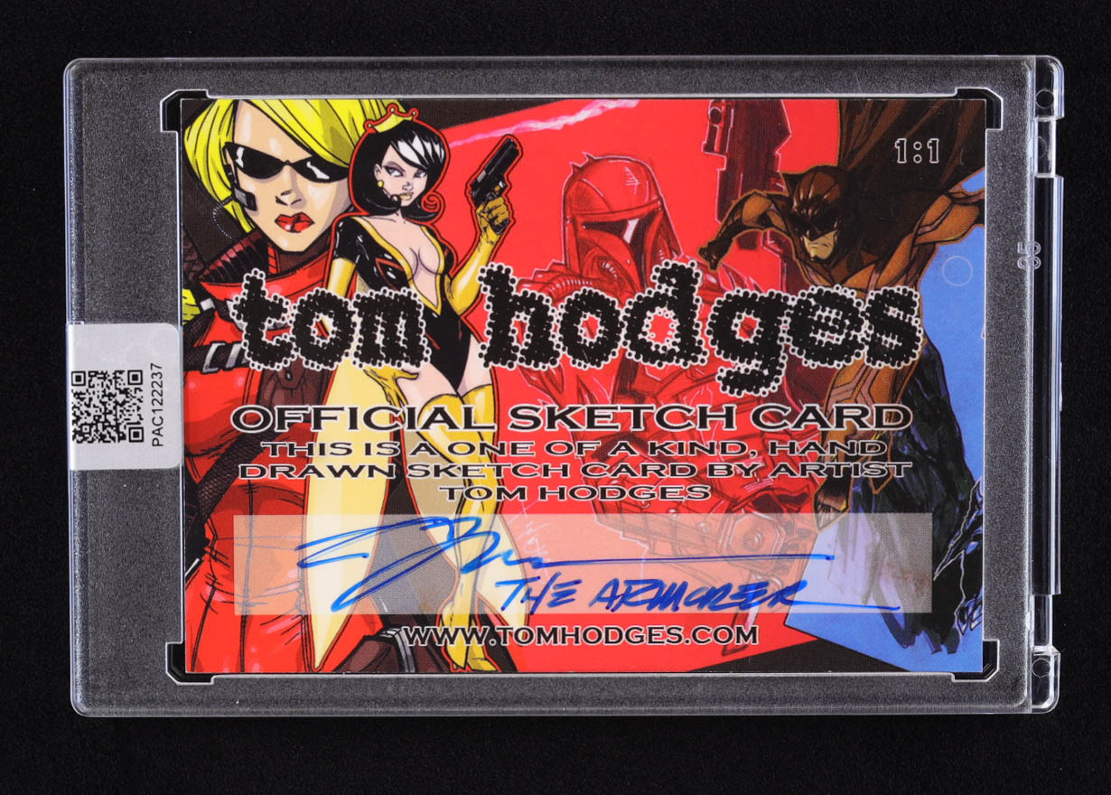 This original sketch card includes original art by renowned comic book artist, Tom Hodges. Also includes a character name inscription on the back by the artist.