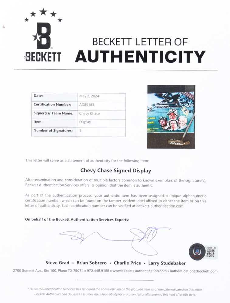 Custom frame measures approximately 18" x 20" in size and features a cut-down putter that has been hand-signed by Chevy Chase.