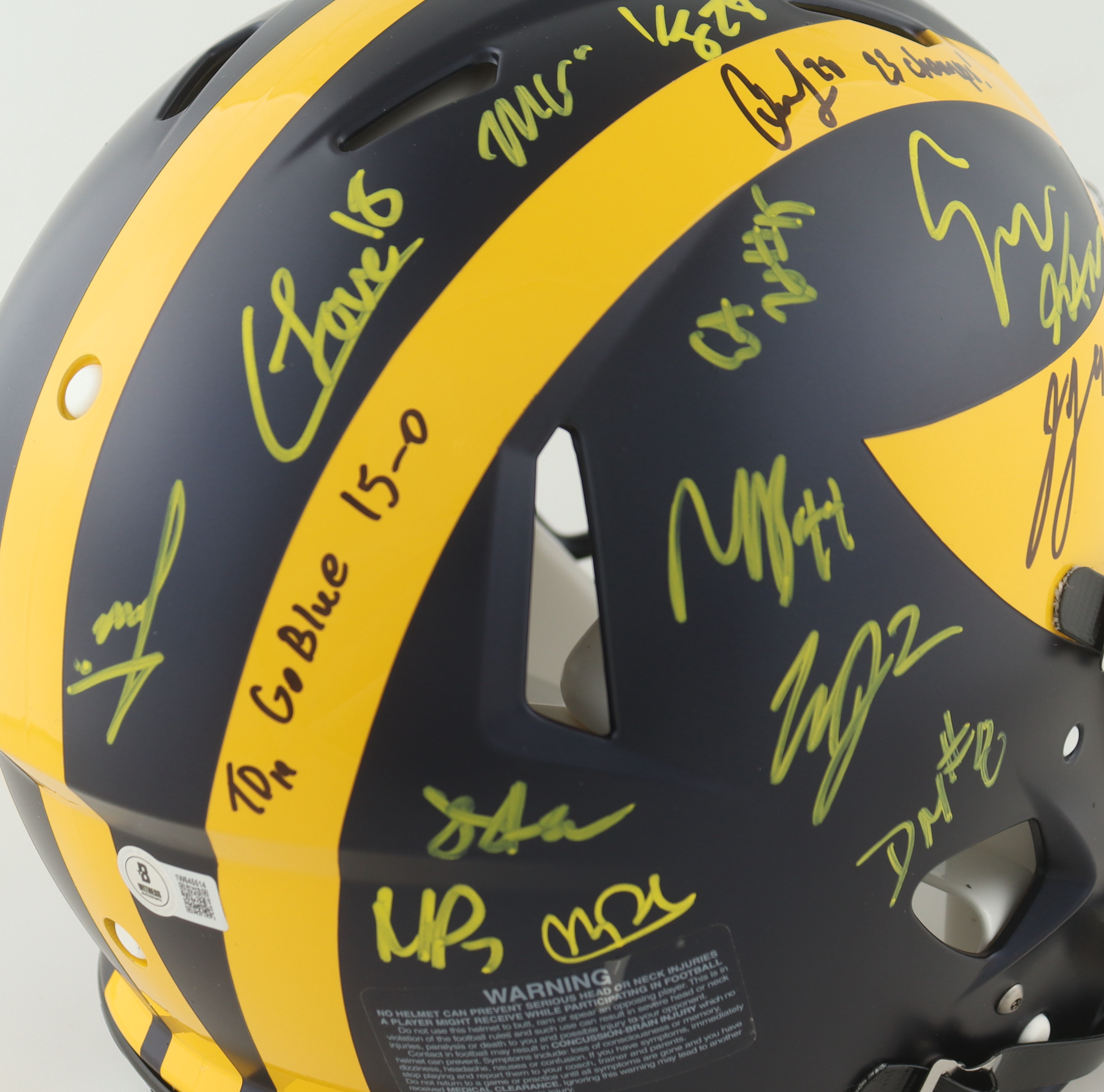 2023 Michigan Wolverines Full-Size Authentic On-Field Speed Helmet Team-Signed by (17) with J.J. McCarthy, Blake Corum, Roman Wilson, Colston Loveland Inscribed "Go Blue 15-0" & "23 Champs!" (Beckett)