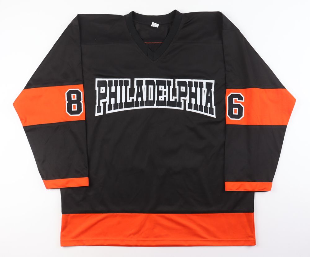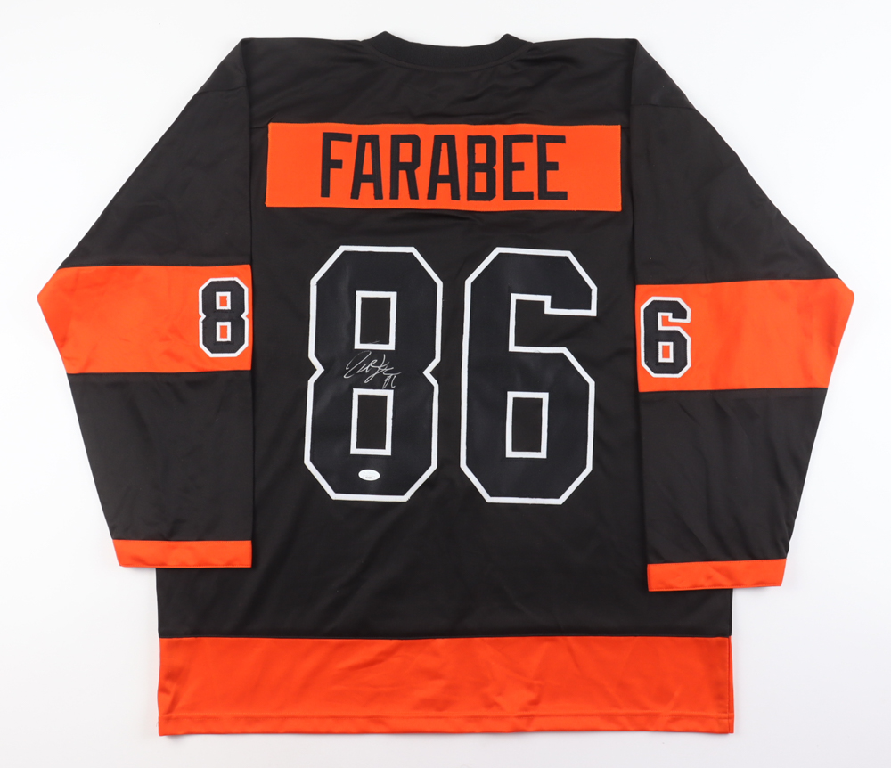 Custom jersey with everything sewn on, size XL. Hand-signed by Joel Farabee.