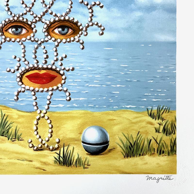 "Sheherazade" is a limited edition lithograph by Rene Magritte (1898-1967). This piece is numbered 200/275 and bears the dry stamps of the Magritte Foundation & ADAGP (Society of Authors in the Graphic and Plastic Arts) and is signed by the President of the Magritte Foundation, Charly Herscovici. This piece comes custom framed. Measures approx. 23.5" x 26" (frame), 17.5" x 20" (image).
