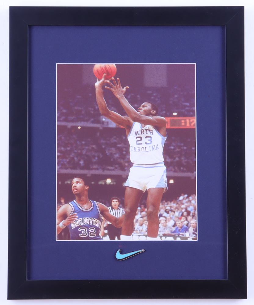 Michael Jordan North Carolina Tar Heels Custom Framed Photo Display with Nike Swoosh Pin