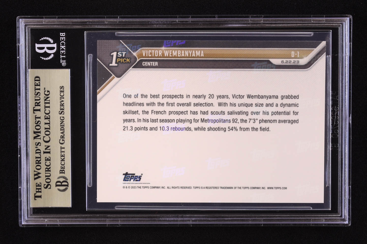 Victor Wembanyama 2023 Topps Now Draft #D1 RC (BGS 10)