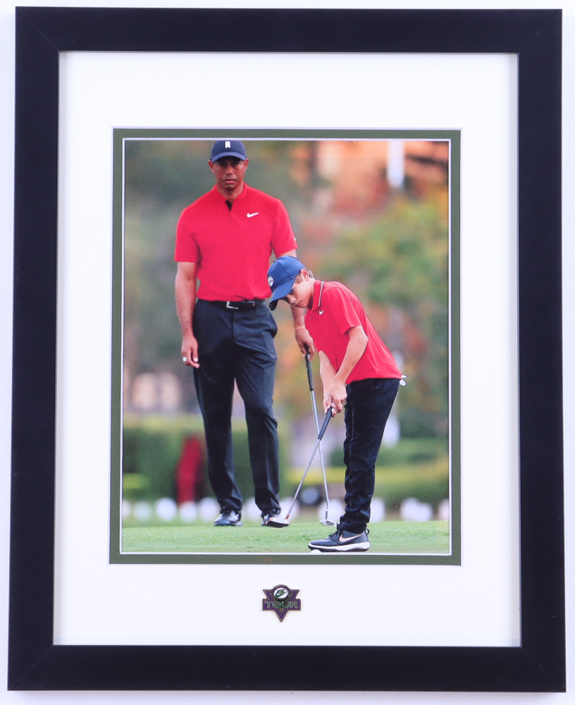 Tiger Woods & Charlie Woods Custom Framed Photo Display With Vintage Nike Tour Golf Pin