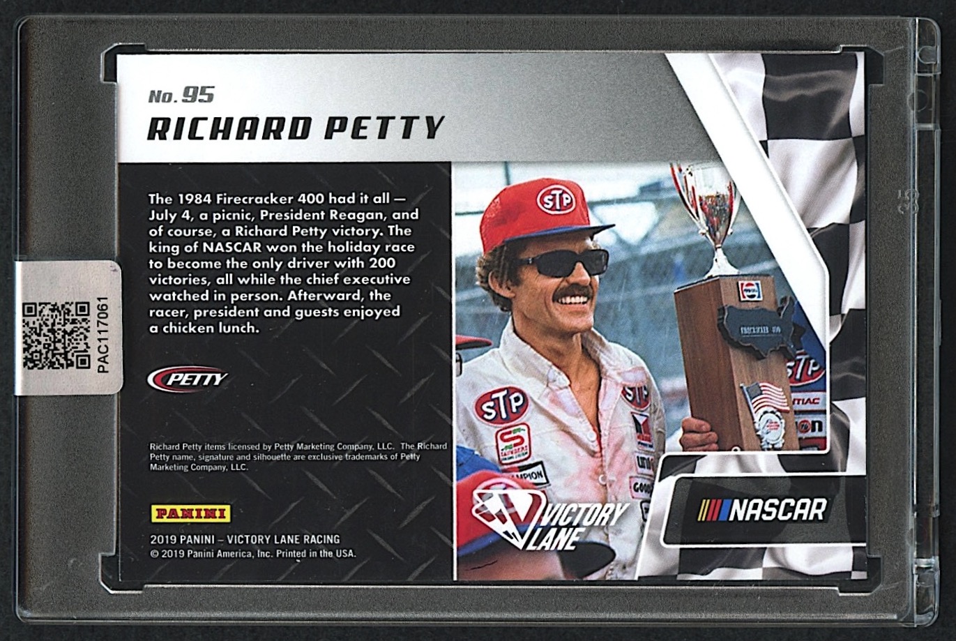 Richard Petty Signed 2019 Panini Victory Lane #95 Past Winners (PA Encapsulated)