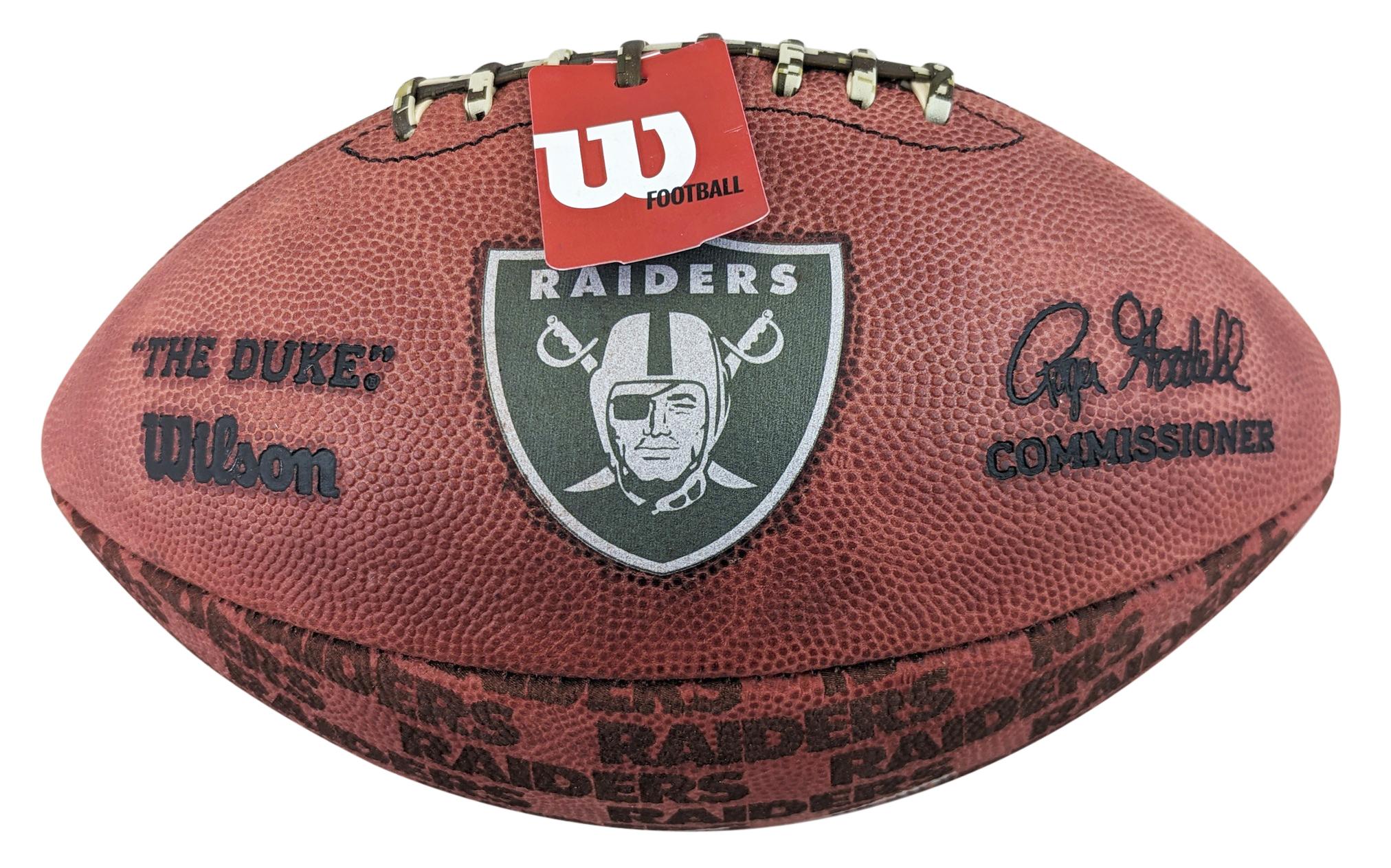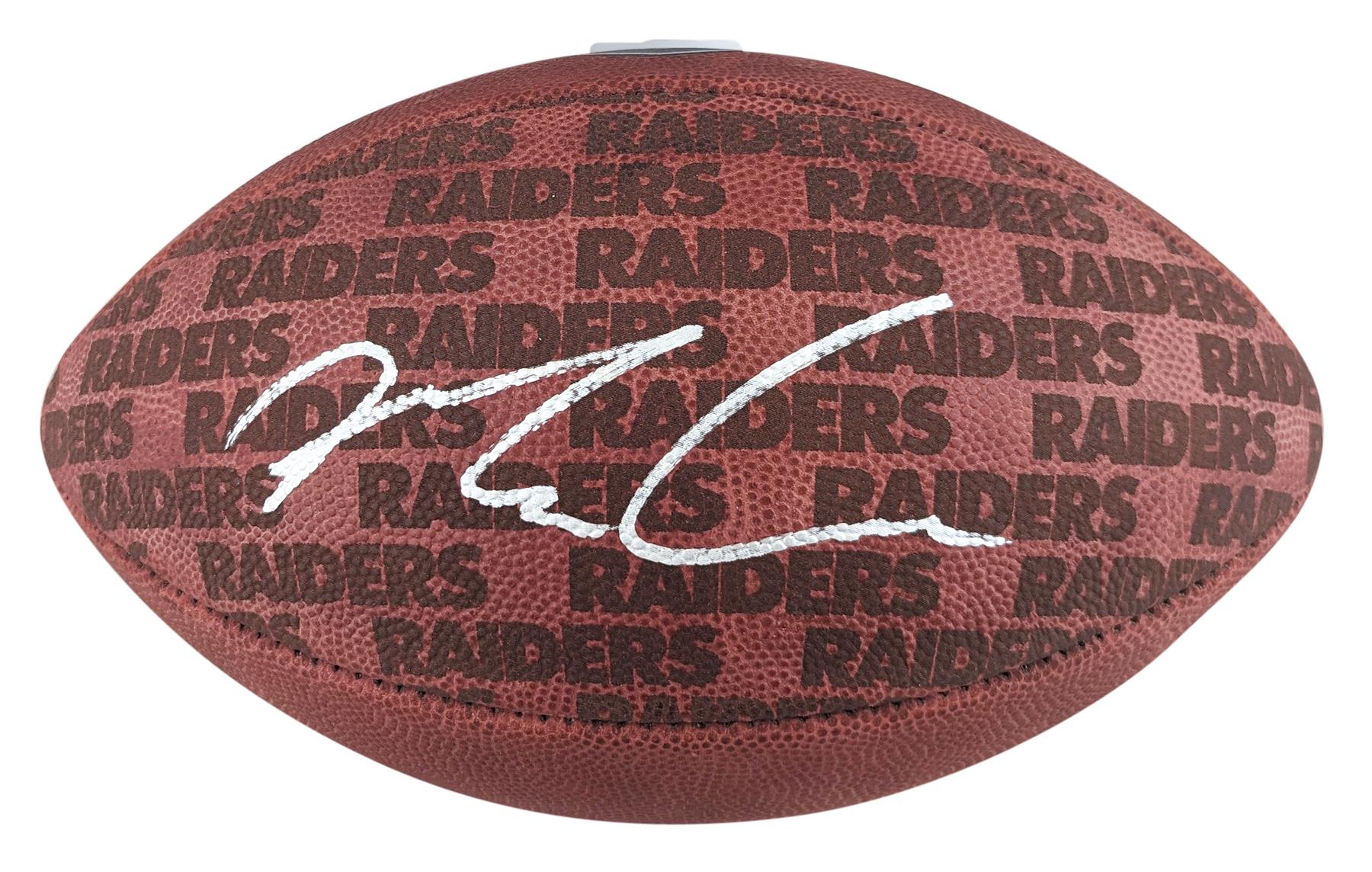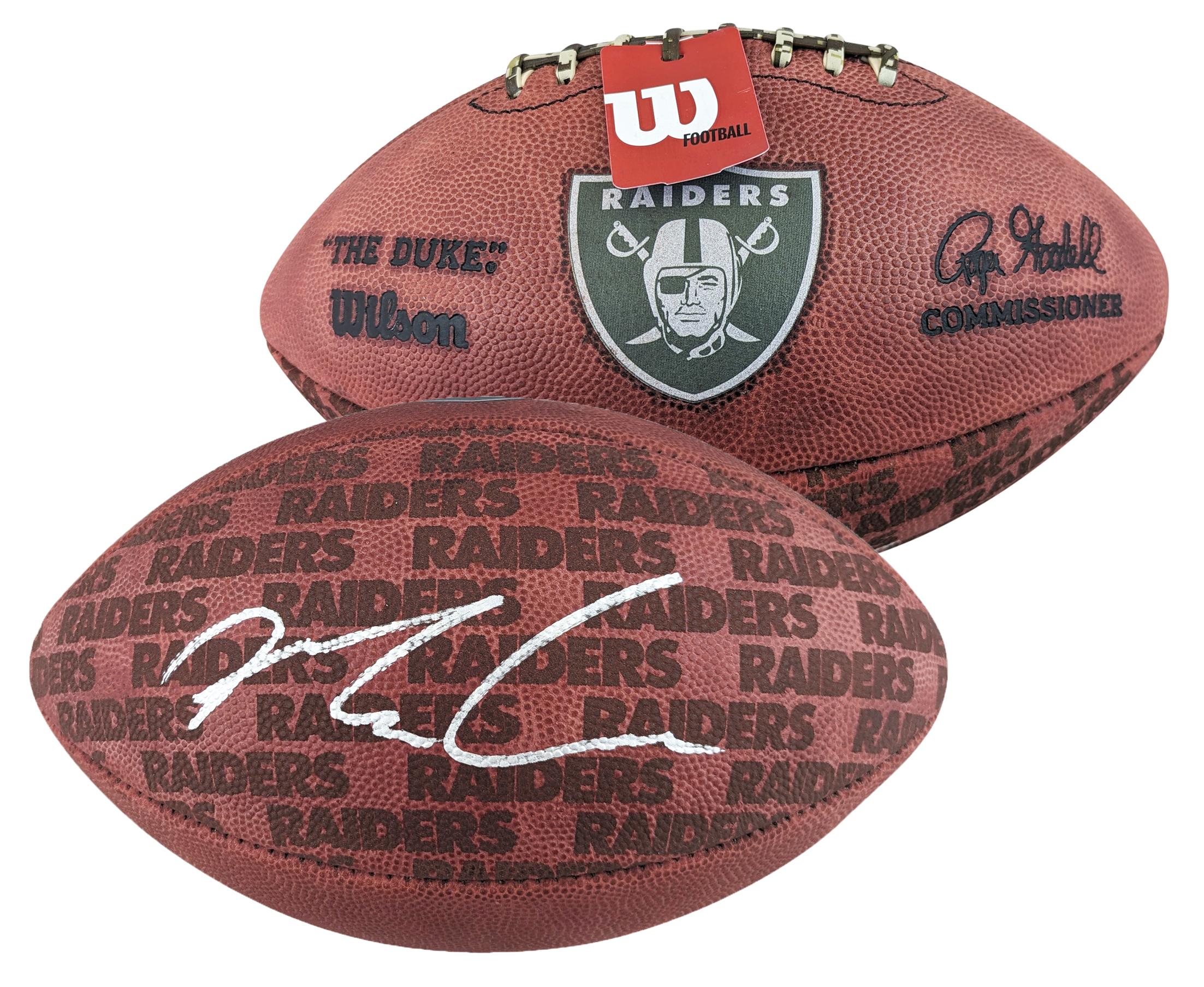 Wilson Official NFL "The Duke" Game Ball Las Vegas Raiders team showcase logo football. Hand-signed by Maxx Crosby.