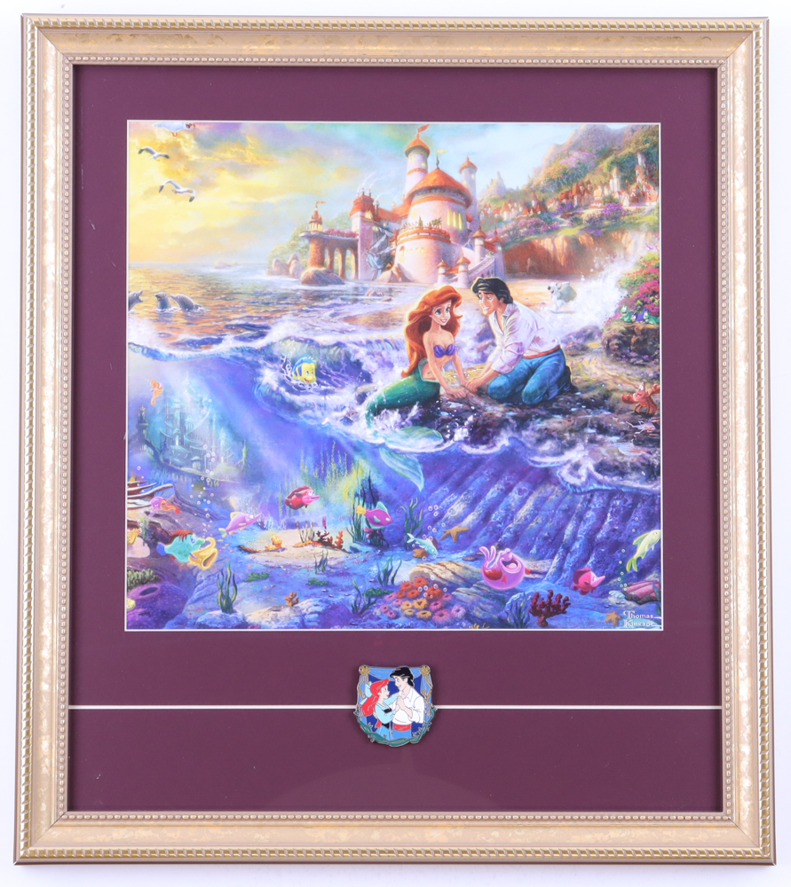 Thomas Kinkade "The Little Mermaid" Custom Framed Print Display With Disney Ariel & Eric Dual Pin