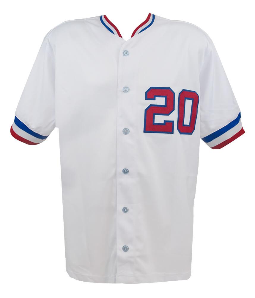 Custom jersey with everything sewn on, size XL. Hand-signed and inscribed by Jeff Burroughs.