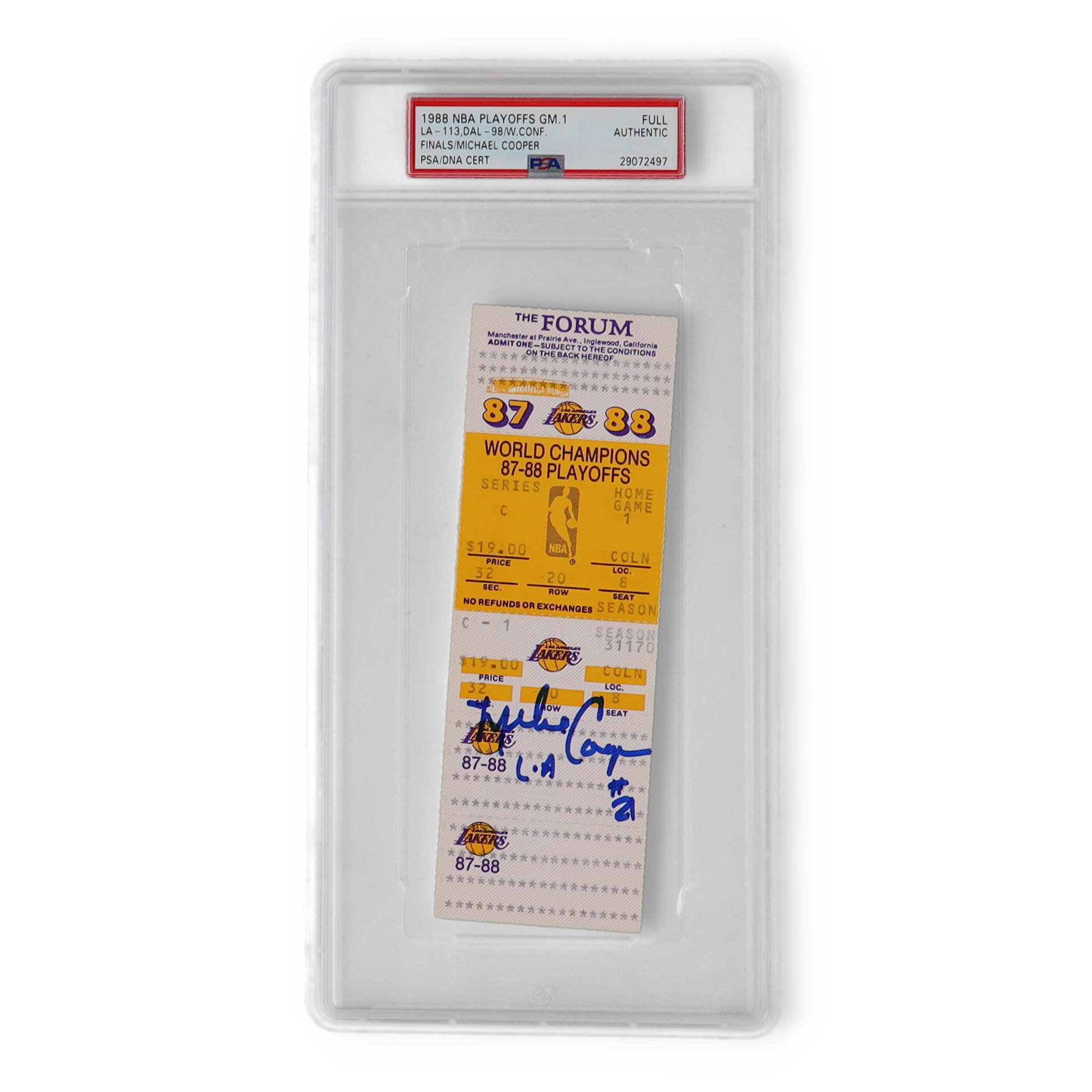Ticket has been hand-signed by and inscribed Michael Cooper (Los Angeles Lakers).
