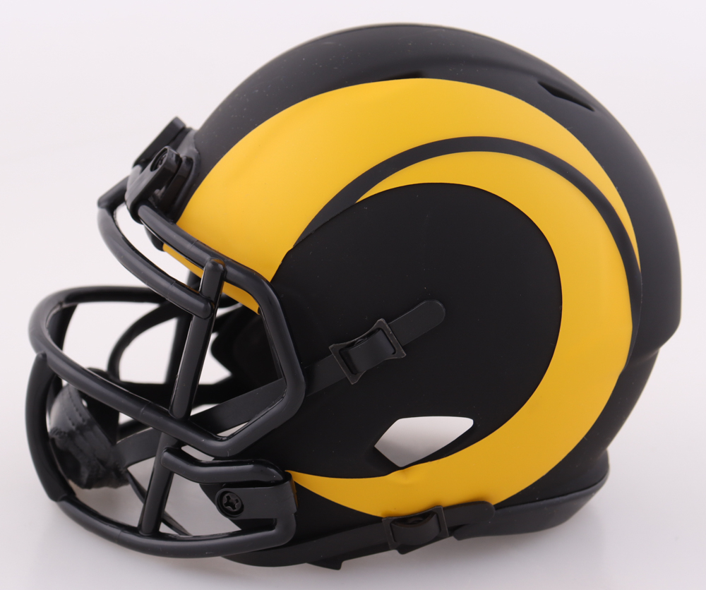 Riddell Los Angeles Rams Eclipse alternate speed mini helmet has been hand-signed by Kyren Williams.