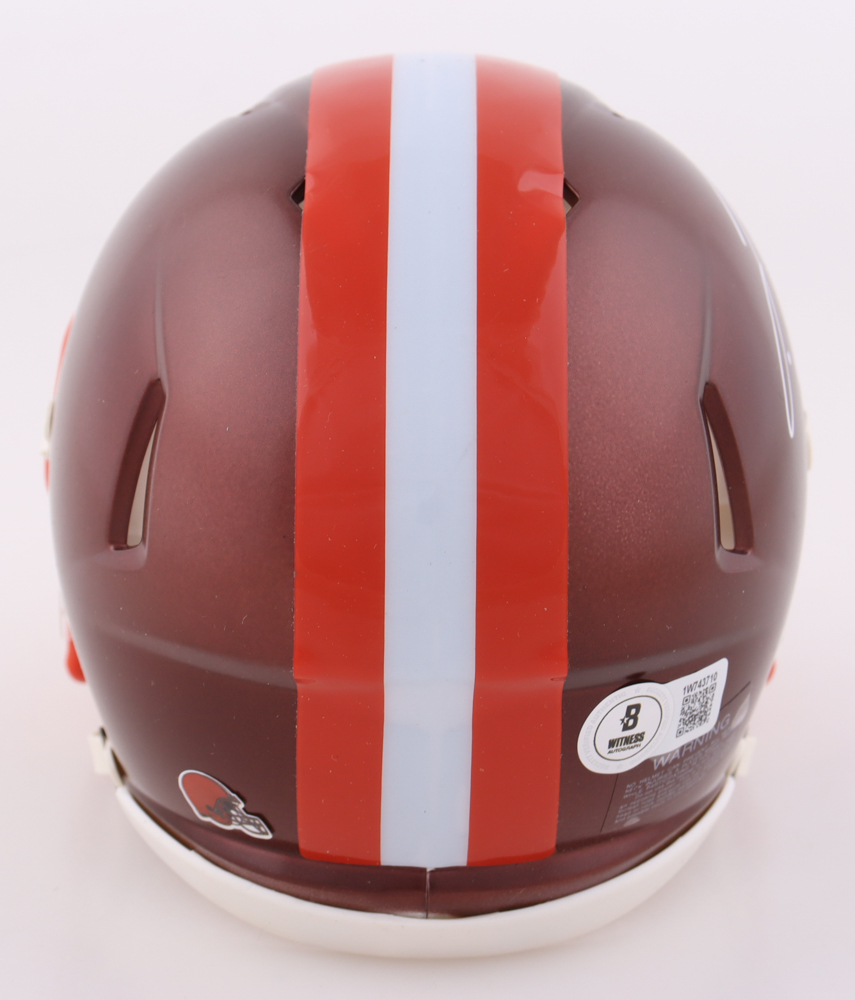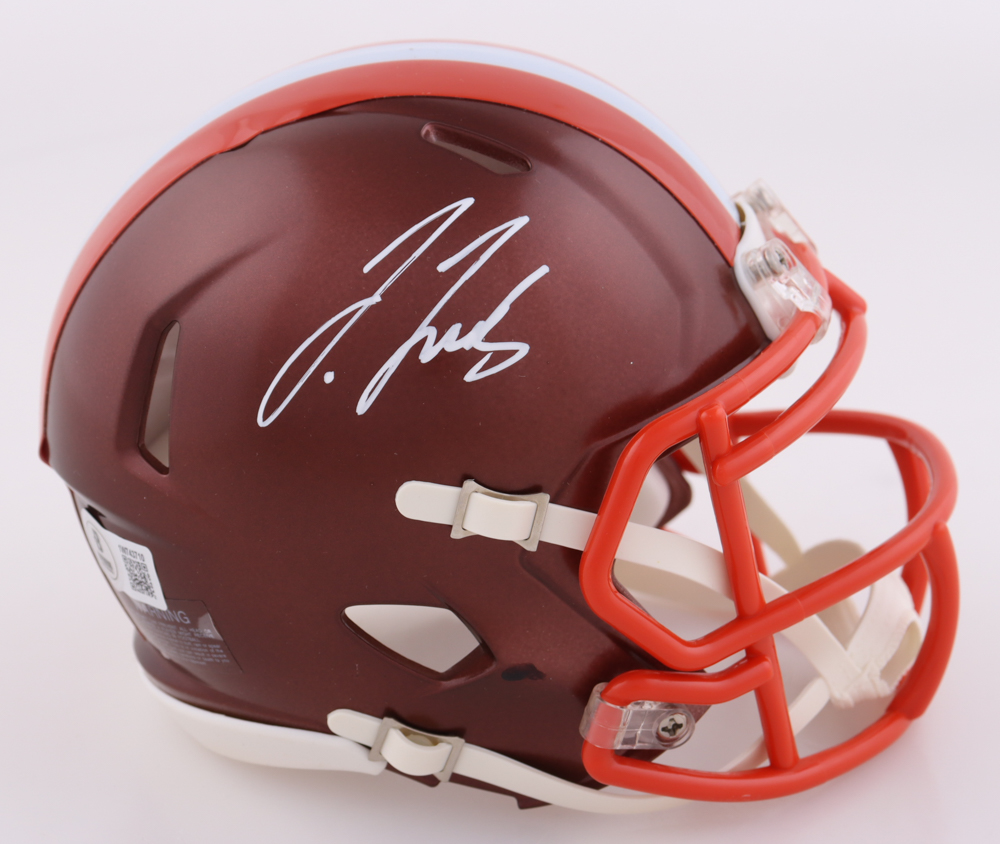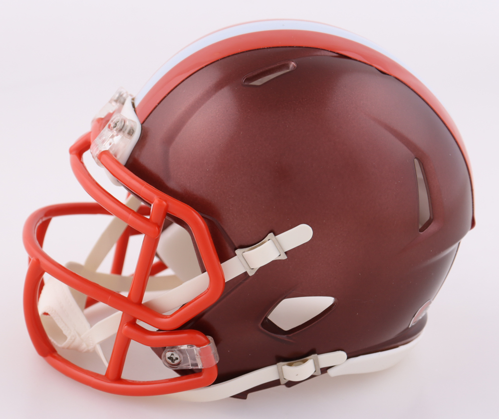 Riddell Cleveland Browns flash alternate speed mini helmet. Hand-signed by Jerry Jeudy.