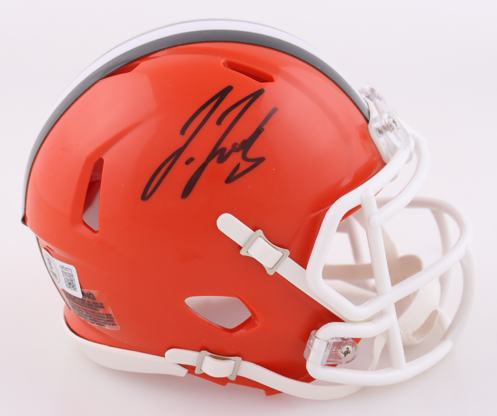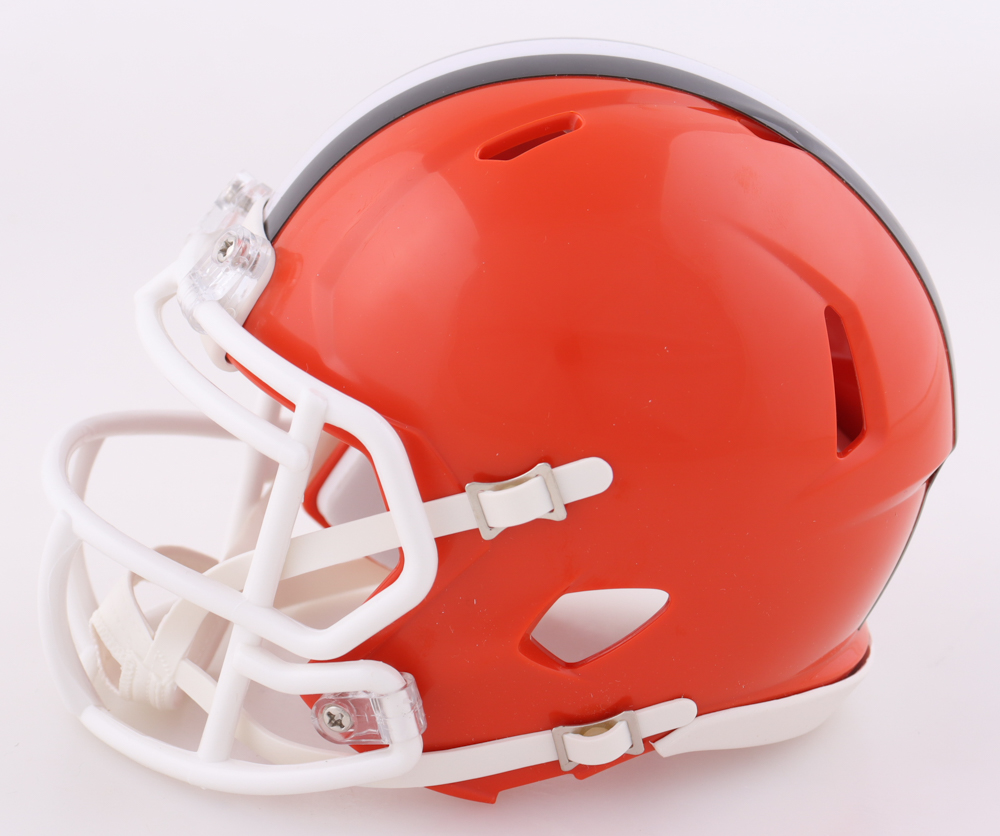 Riddell Cleveland Browns speed mini helmet. Hand-signed by Jerry Jeudy.