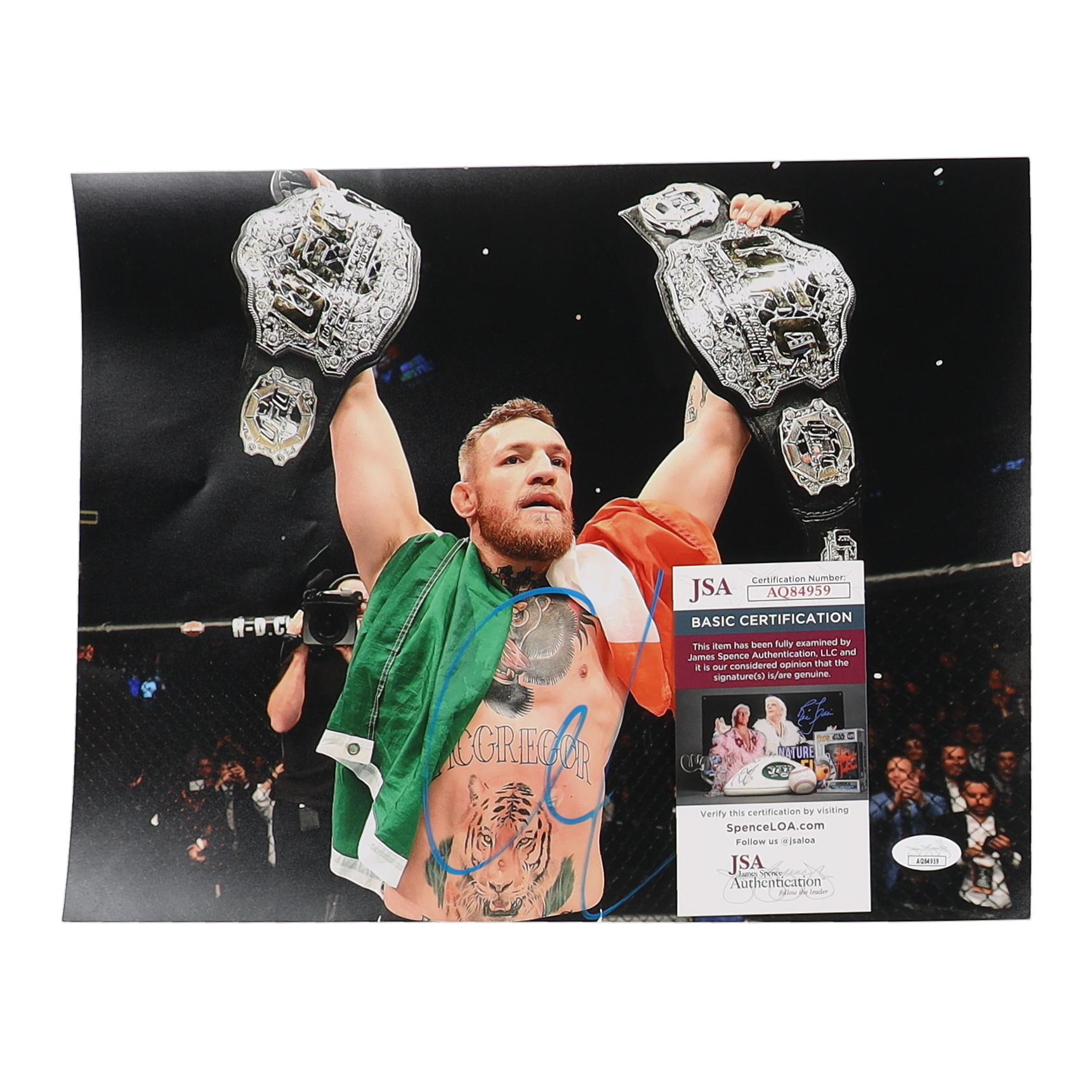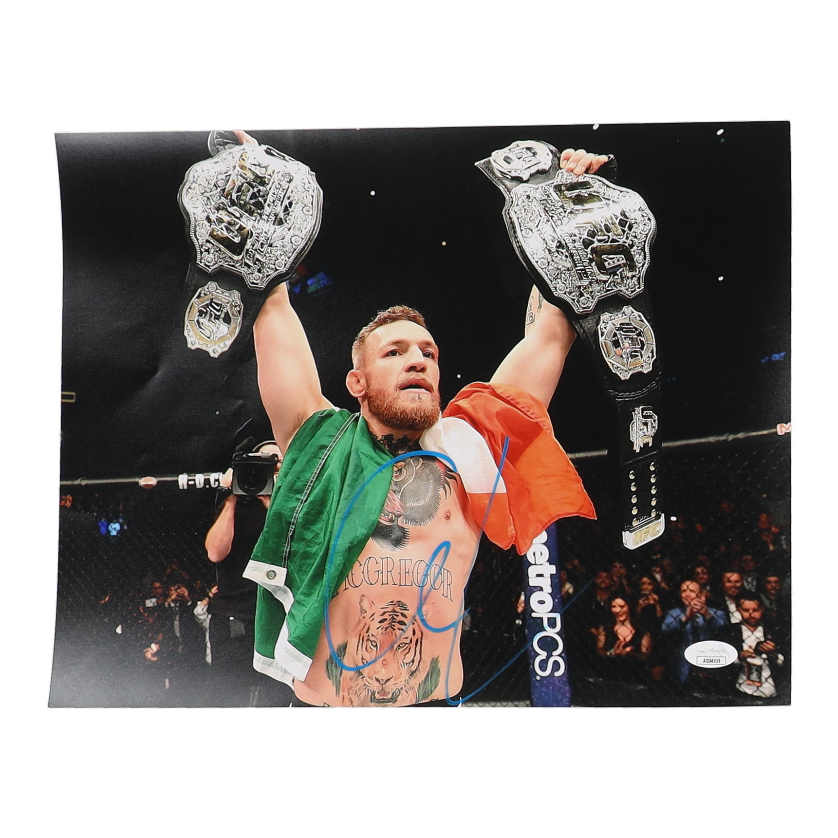 Photo measures 11" x 14" in size and is hand-signed by Conor McGregor.