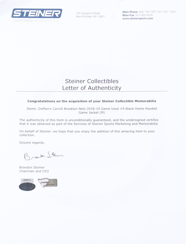 DeMarre Carroll Game-Used Nets Warm-Up Jacket (Steiner & Fanatics)