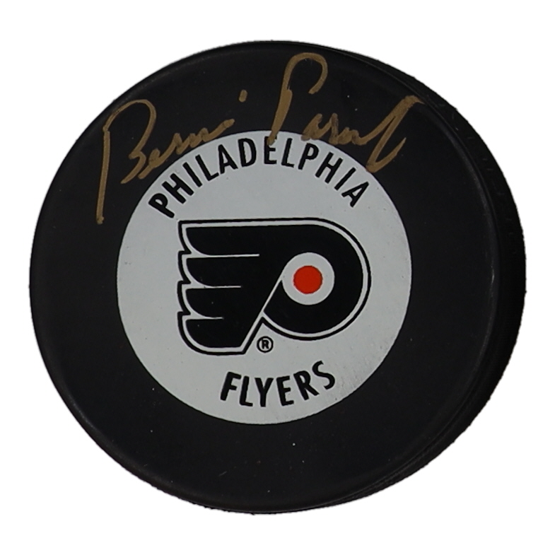 Philadelphia Flyers logo hockey puck. Hand-signed by Bernie Parent (HOF).