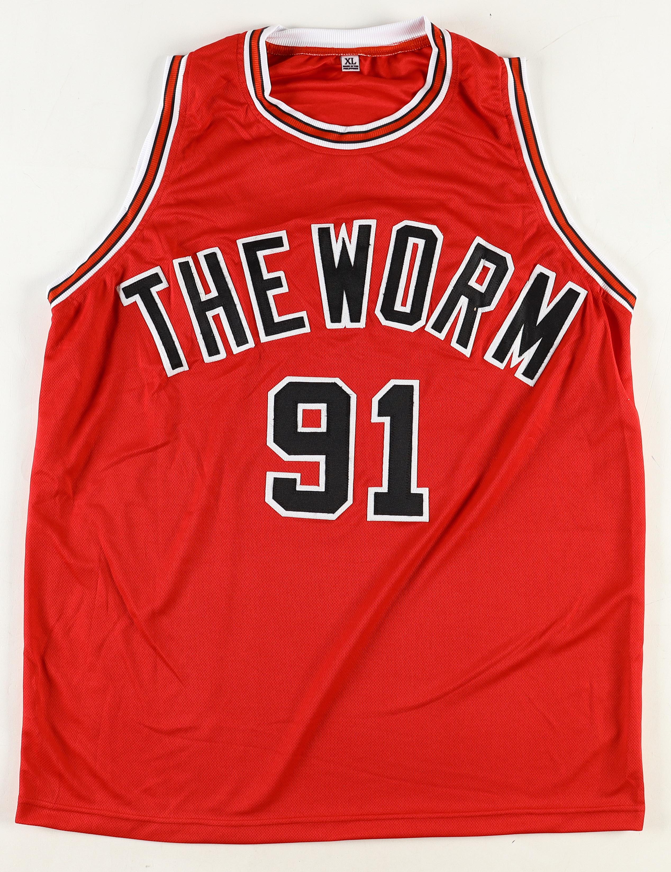 Custom jersey. Everything is sewn on, size XL. Hand-signed by Dennis Rodman (HOF).