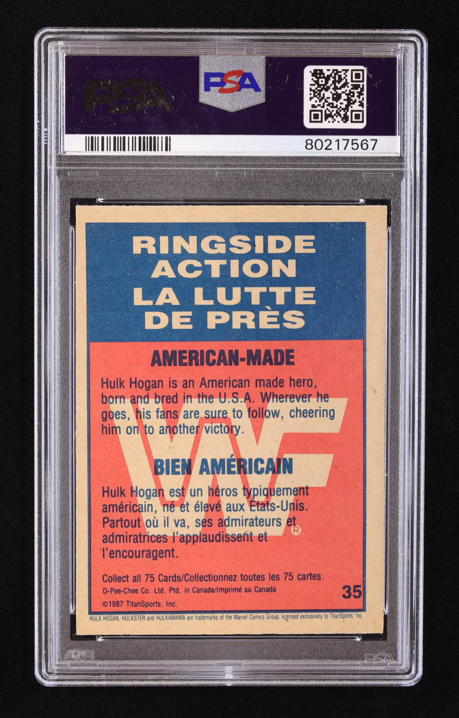 American-Made 1987 O-Pee-Chee WWF #35 RA (PSA 8)