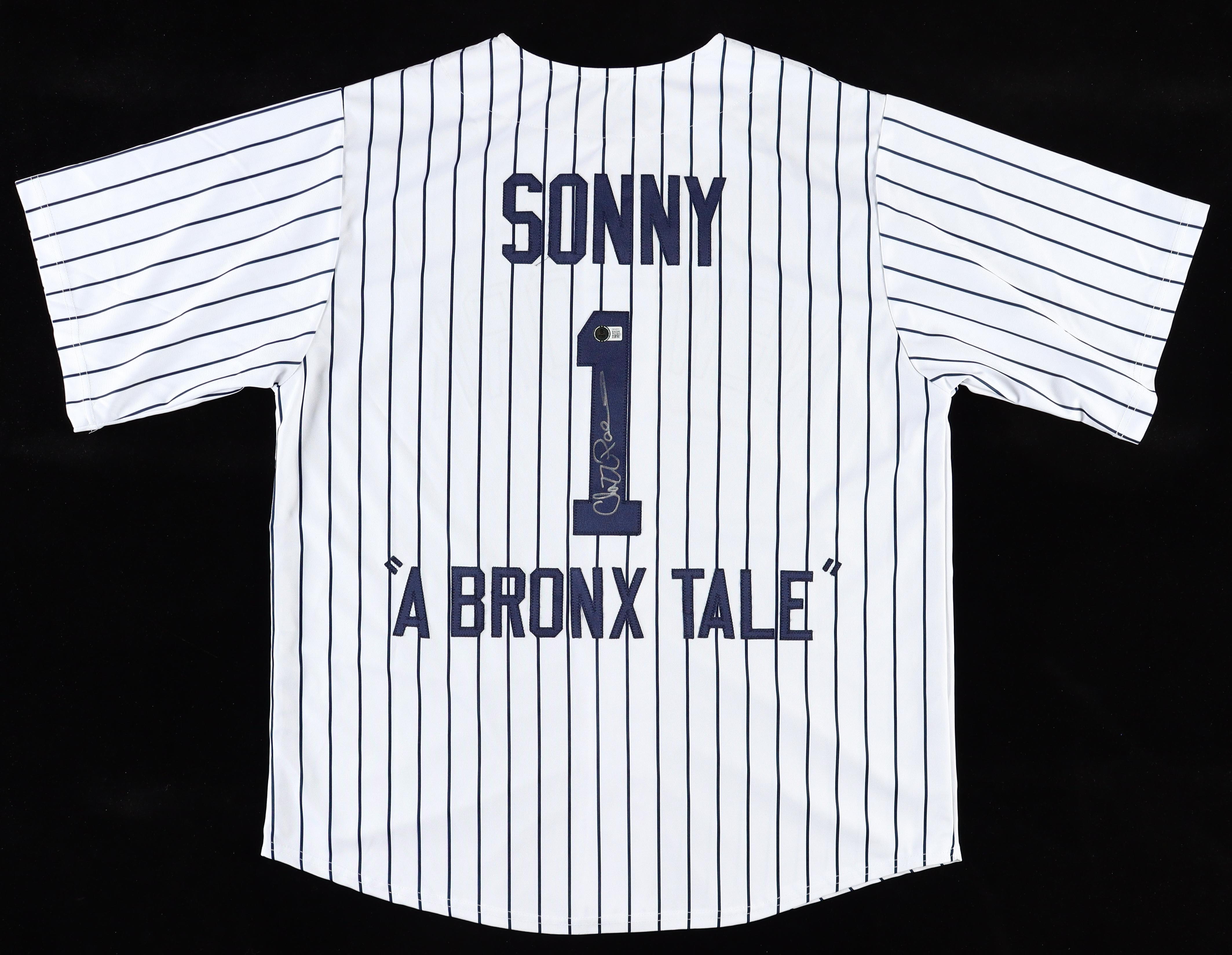 Custom jersey. Everything sewn on, size XL. Hand-signed by Chazz Palminteri (Sonny).