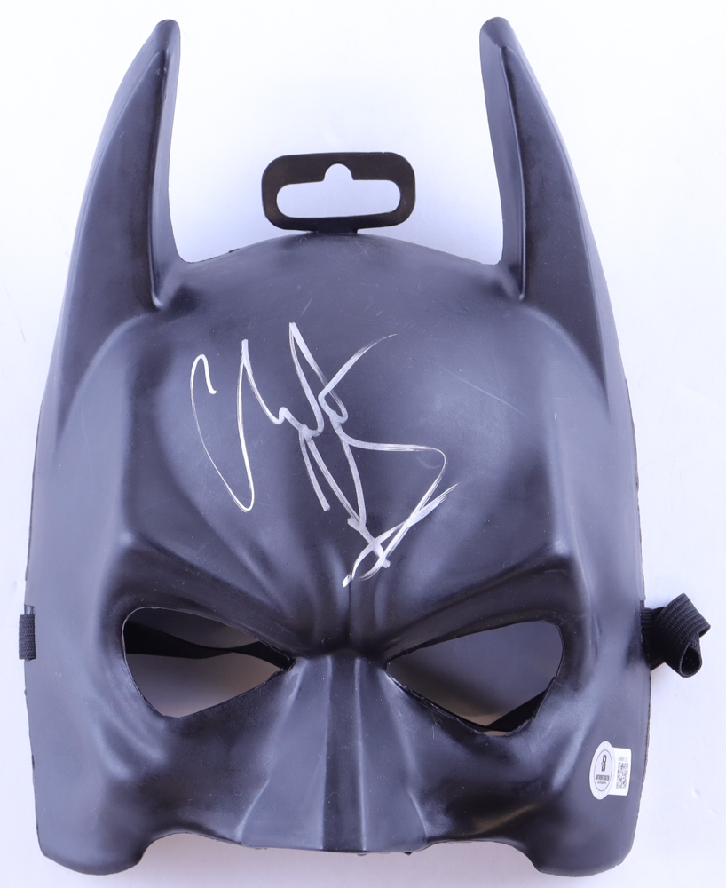 Plastic Batman mask has been hand-signed by Christian Bale.