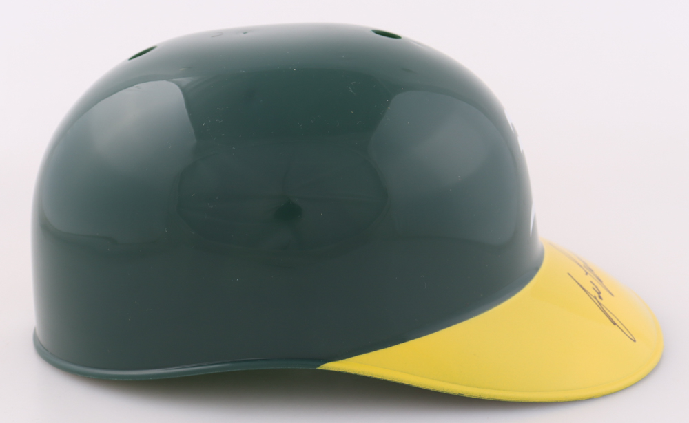 Oakland Athletics full-size replica plastic souvenir helmet. Helmet has been hand-signed by Jose Canseco.