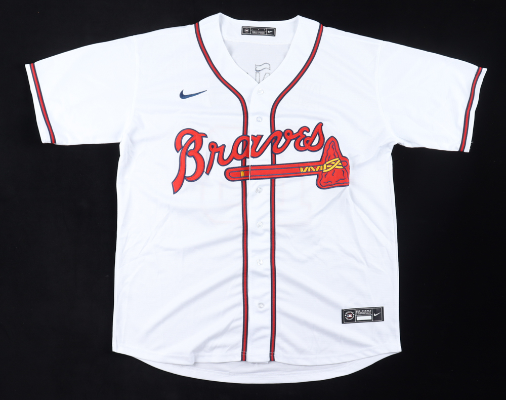 Nike jersey. Everything is sewn on, size L. Hand-signed by Ronald Acuna Jr..