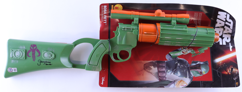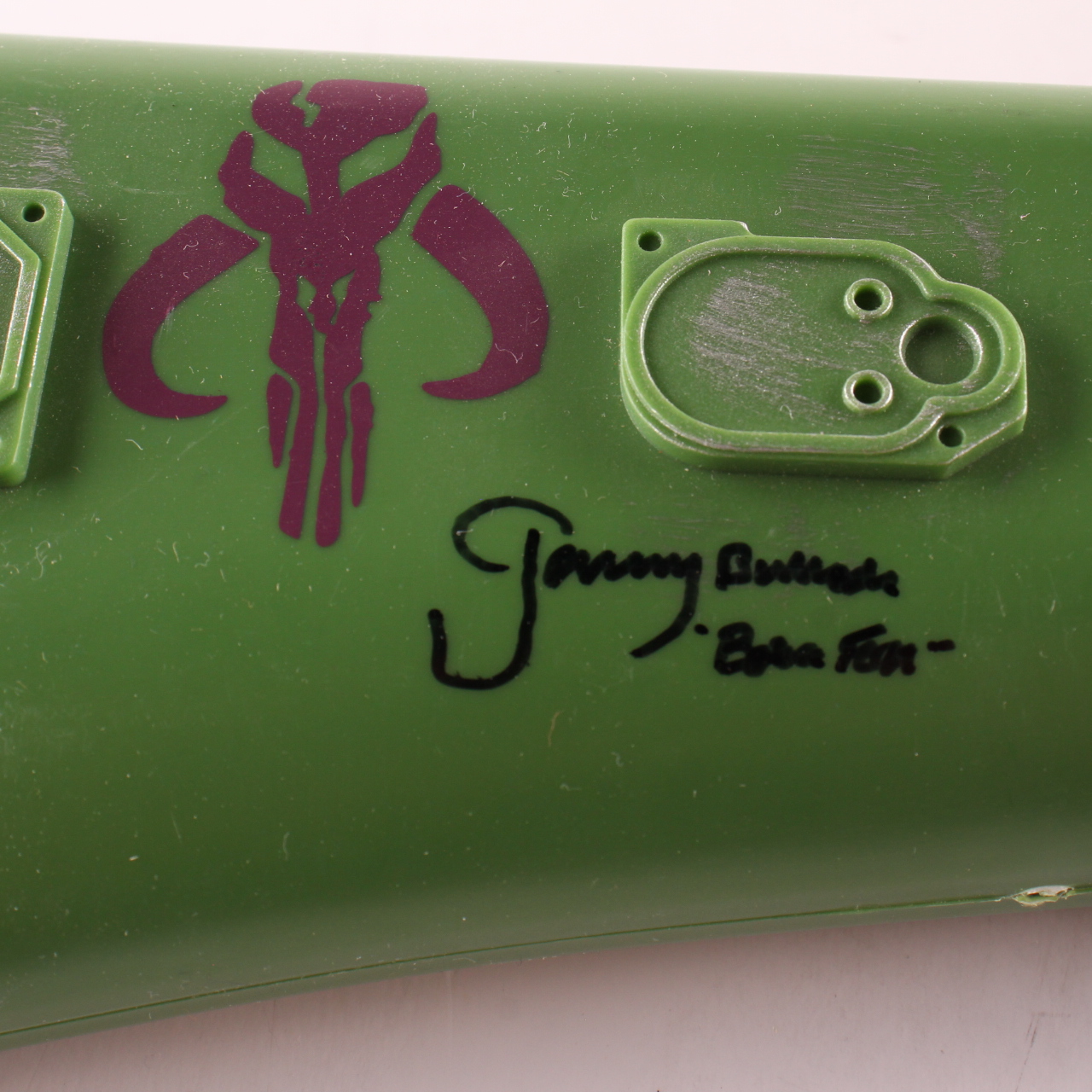 Rubie's Star Wars Boba Fett Blaster plastic toy replica. Hand-signed and inscribed by Jeremy Bulloch (D. 2020, Boba Fett). Please refer to photos for condition of the item.