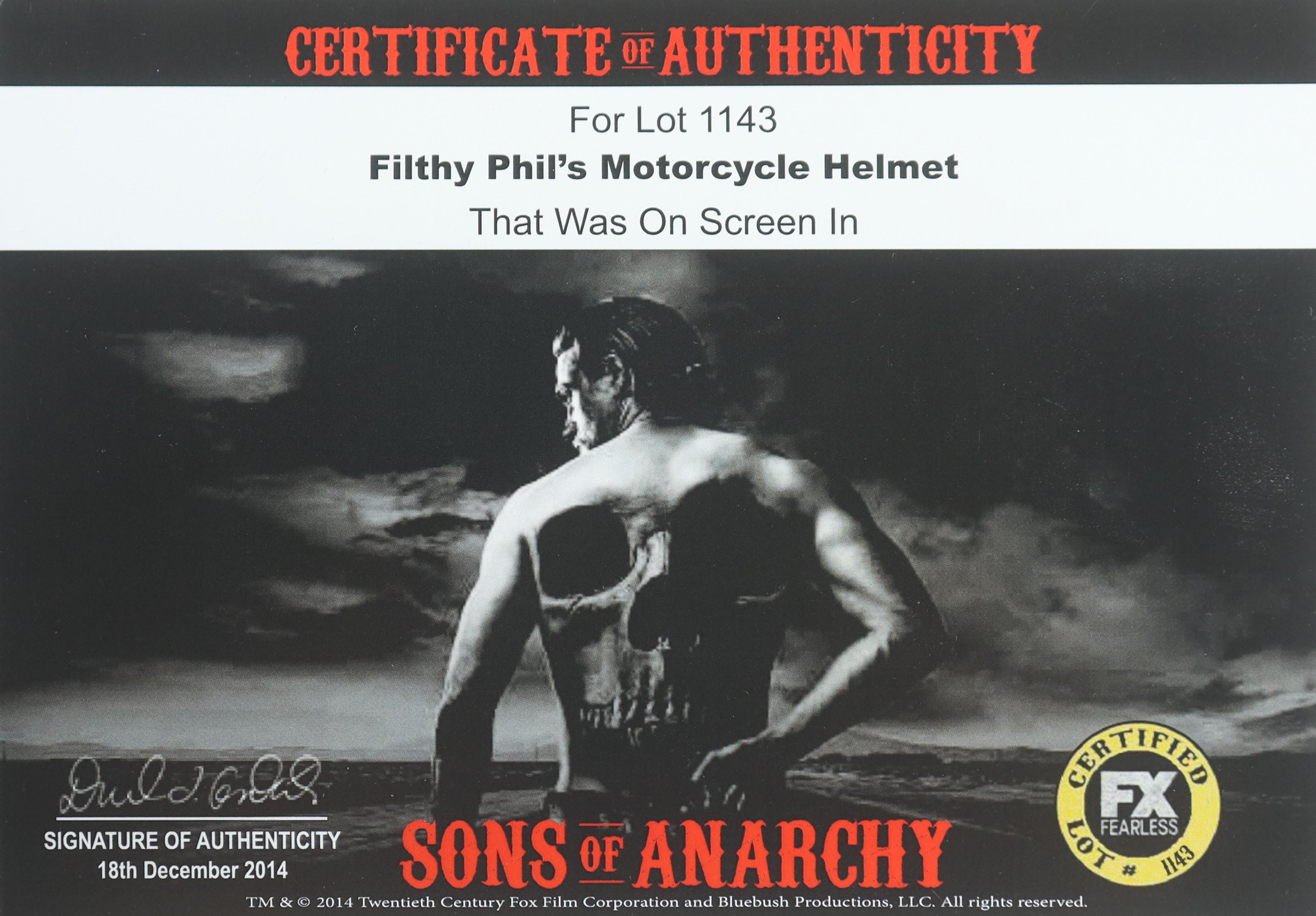 Sons of Anarchy Biker helmet was seen on screen in the show for Filthy Phil's motorcycle helmet.
