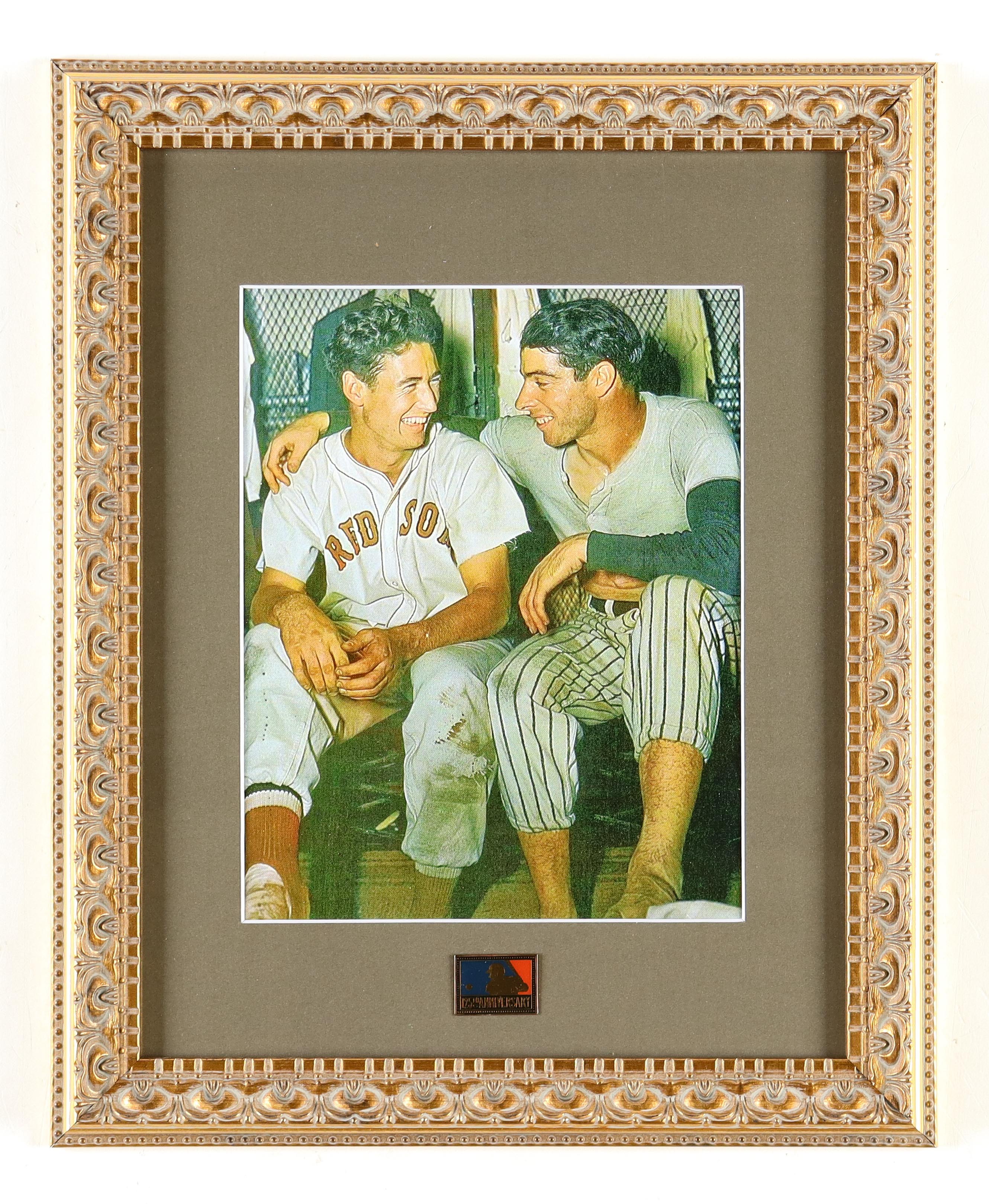 Custom frame measures approximately 13.25" x 16.25" in size and features an unsigned photo of Ted Williams (Boston Red Sox) and Joe DiMaggio (New York Yankees). The display also includes a MLB 125th Anniversary Brass Pin. Please note, the display is unsigned.