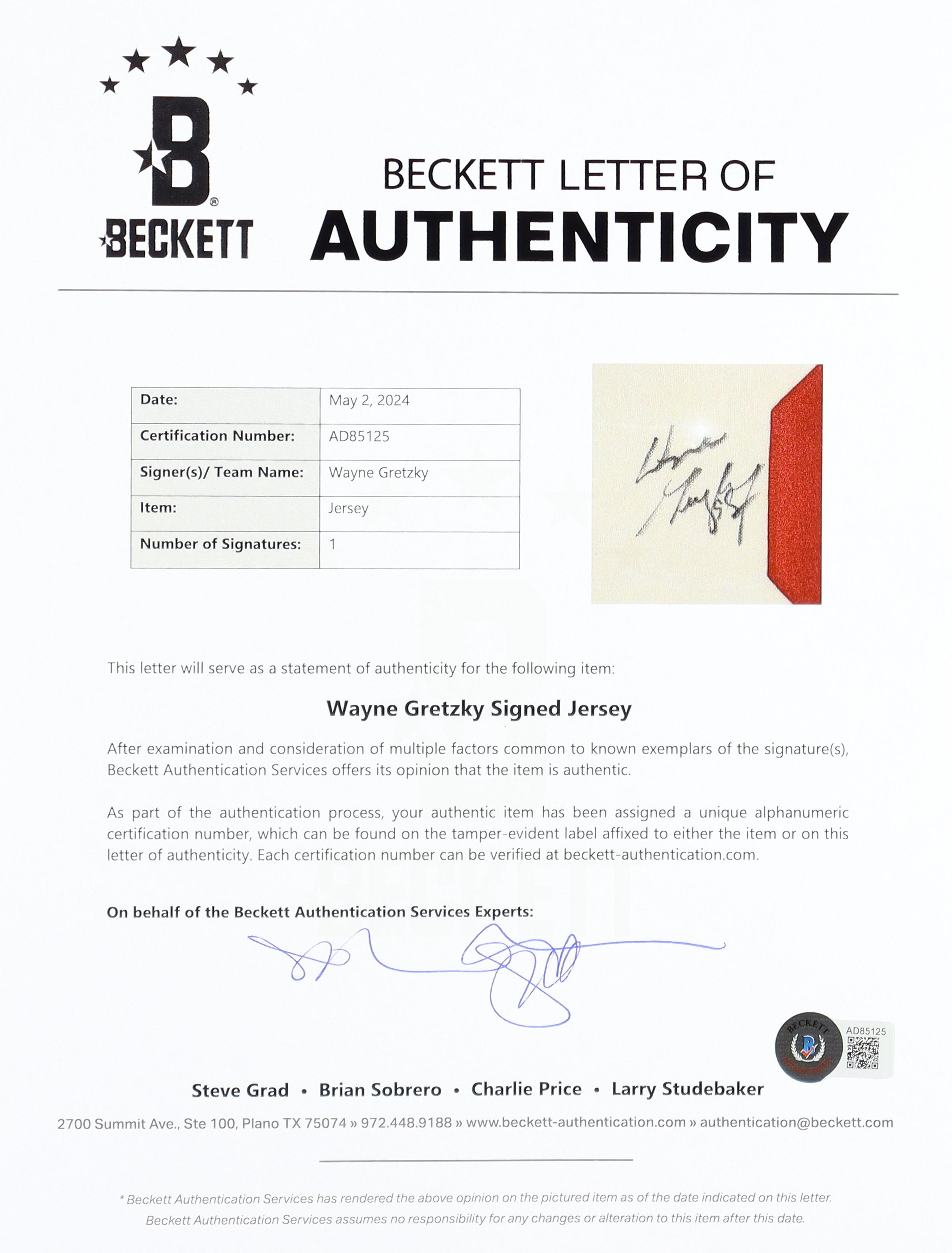 The autograph includes an official Beckett Authentication Services hologram and matching LOA for authenticity purposes.