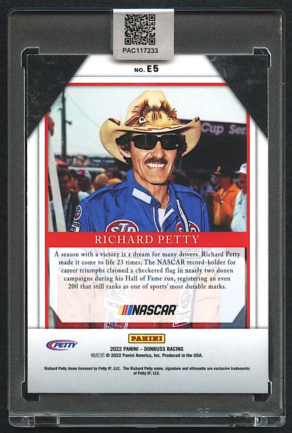 Richard Petty Signed 2022 Donruss Elite Series #5 (PA Encapsulated)