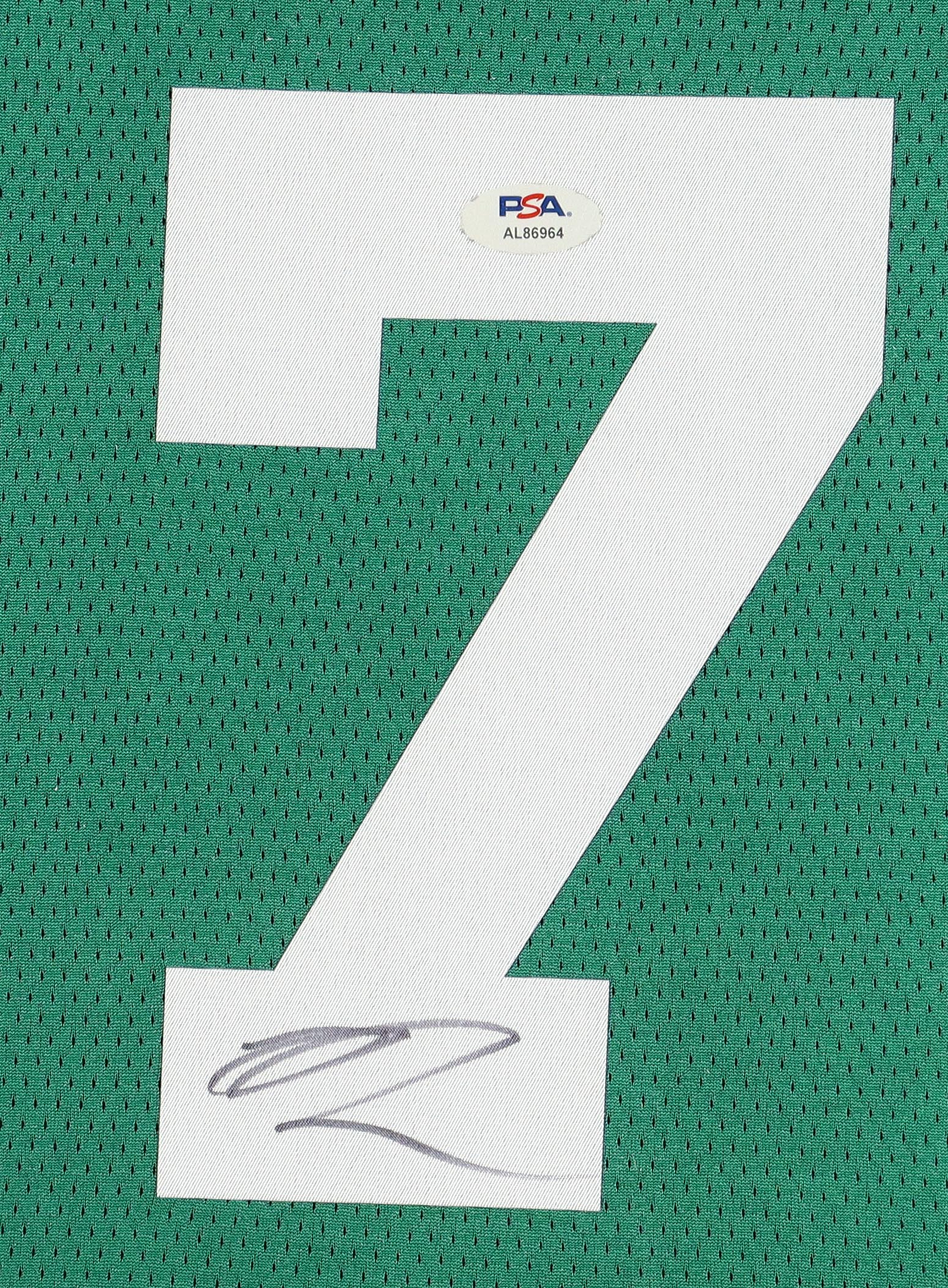 Custom frame measures 35.5" x 43.5" in size and features a jersey that has been hand-signed by Boston Celtics superstar, Jaylen Brown!