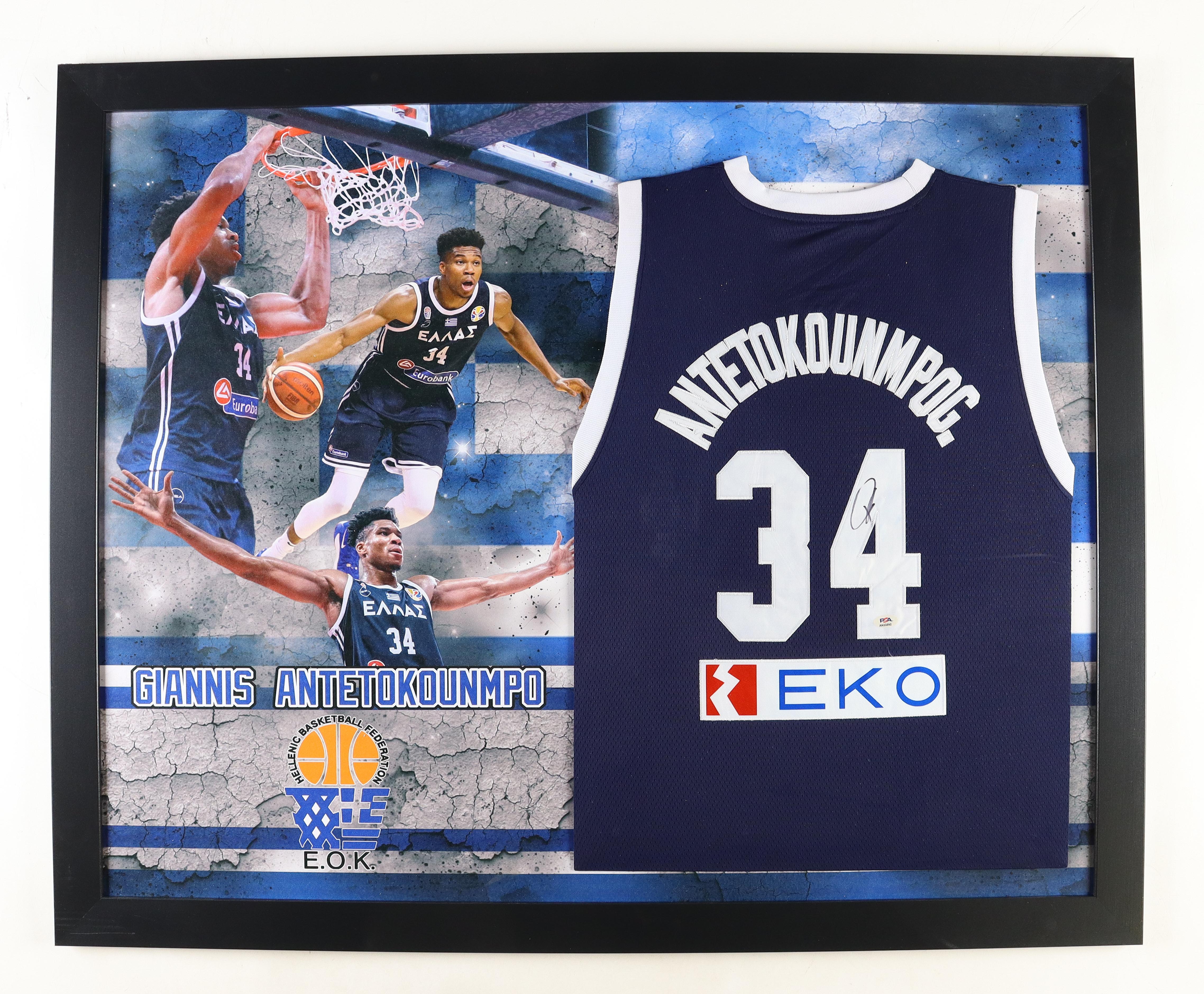 Giannis Antetokounmpo Signed Custom Framed Jersey Display (PSA)