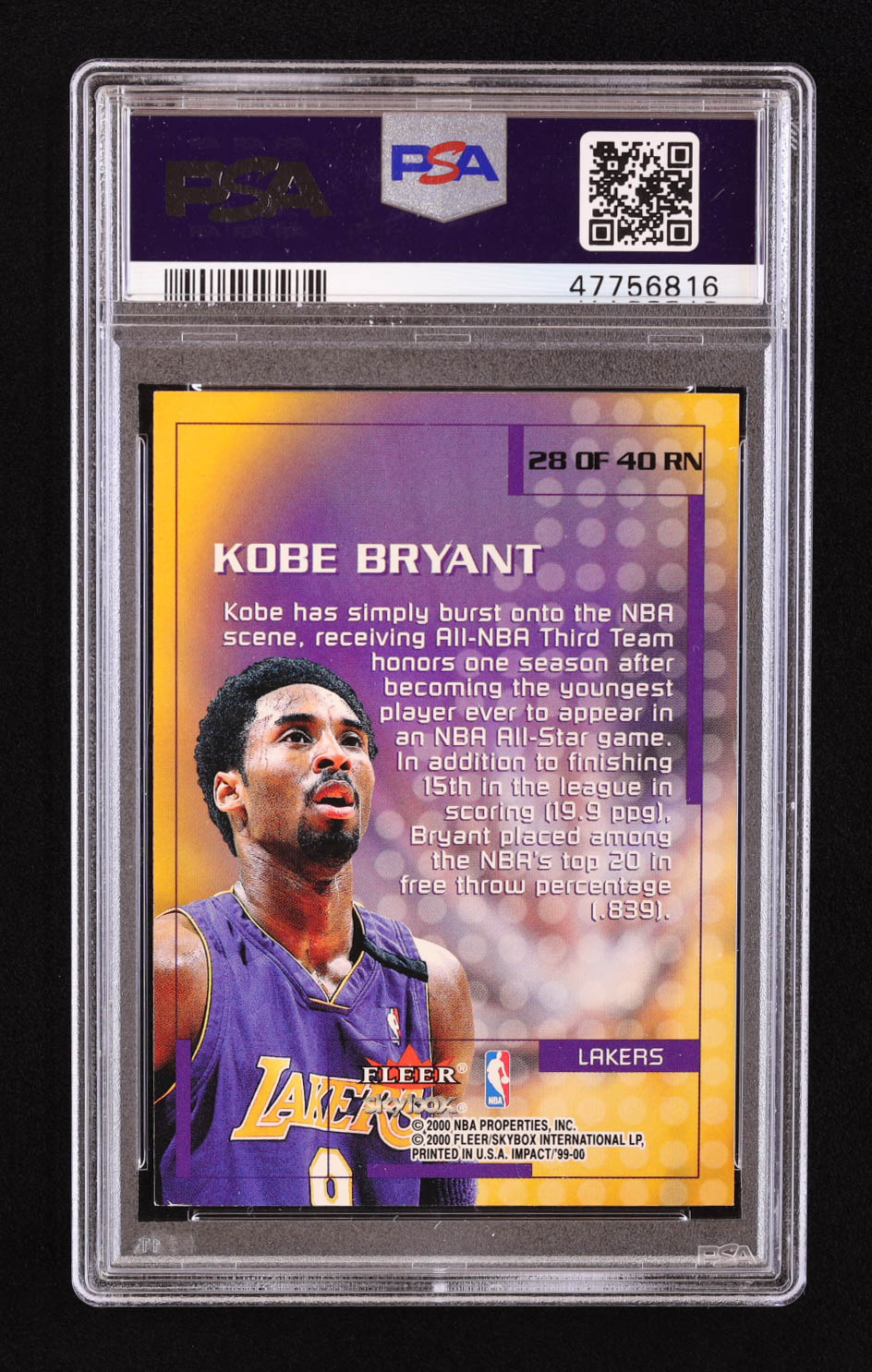Kobe Bryant 1999-00 SkyBox Impact Rewind '99 #RN28 (PSA 7)