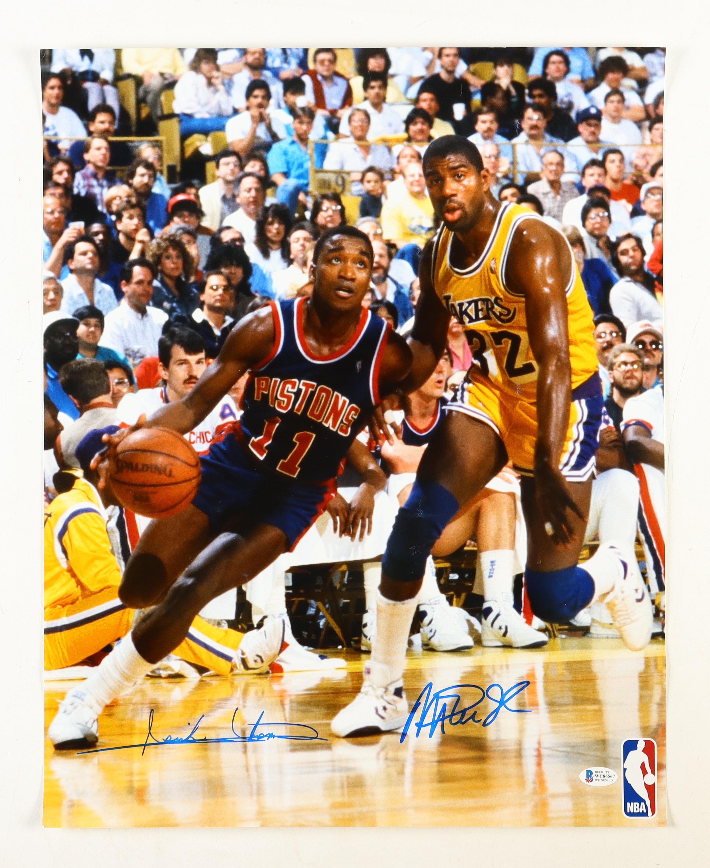 Isiah Thomas & Magic Johnson Signed Pistons 16x20 Photo (Beckett)