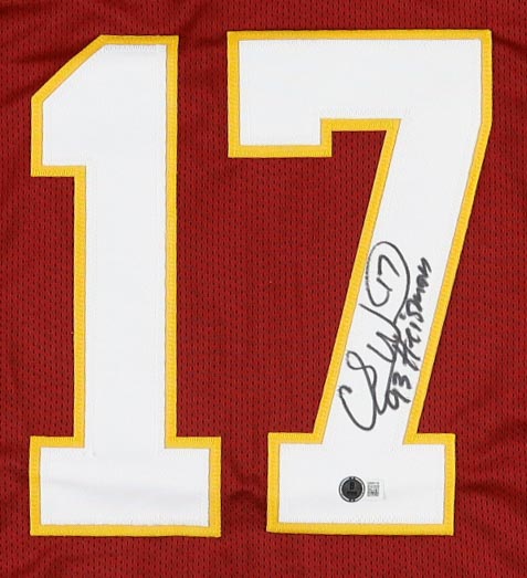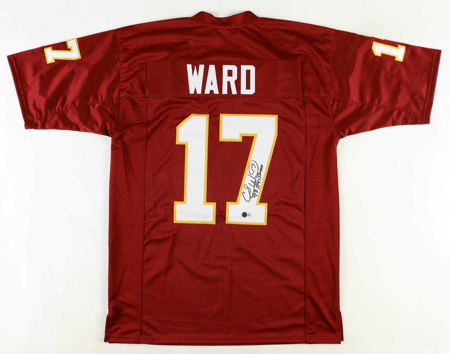 Custom jersey. Everything is sewn on, size XL. Hand-signed and inscribed by Charlie Ward.