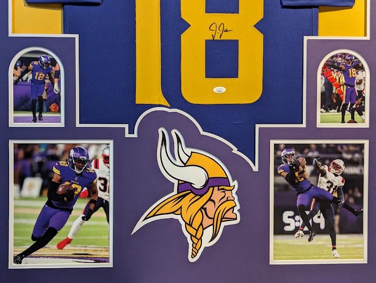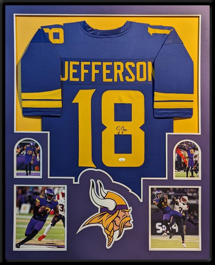 Custom frame measures 34" x 42" in size and features a jersey that has been hand-signed by Justin Jefferson.