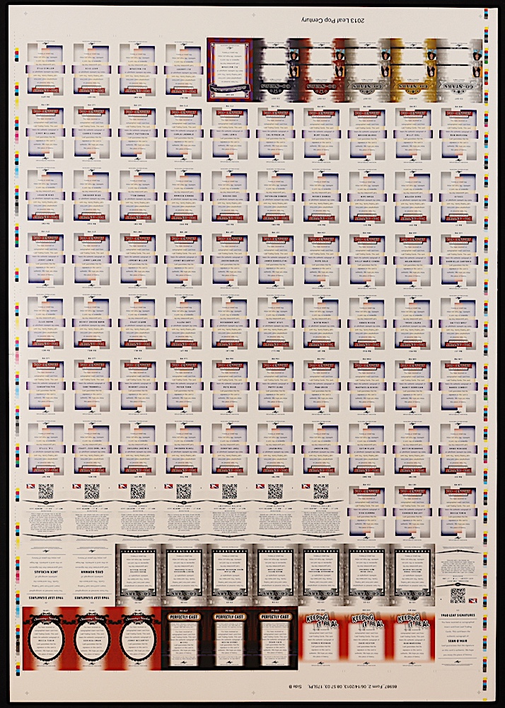 Uncut sheet of (100) 2013 Leaf trading cards. Please refer to photos for more details on the condition of the items. Please note, Relics / Signatures Not Included.