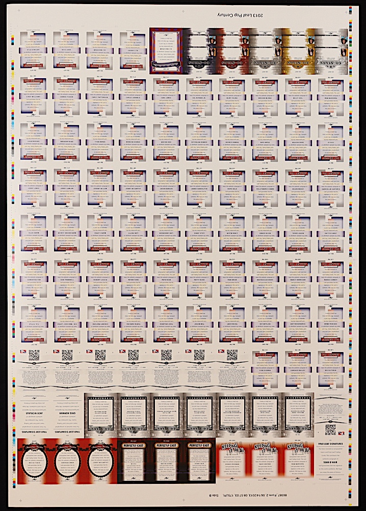 Uncut sheet of (100) 2013 Leaf trading cards. Please refer to photos for more details on the condition of the items. Please note, Relics / Signatures Not Included.