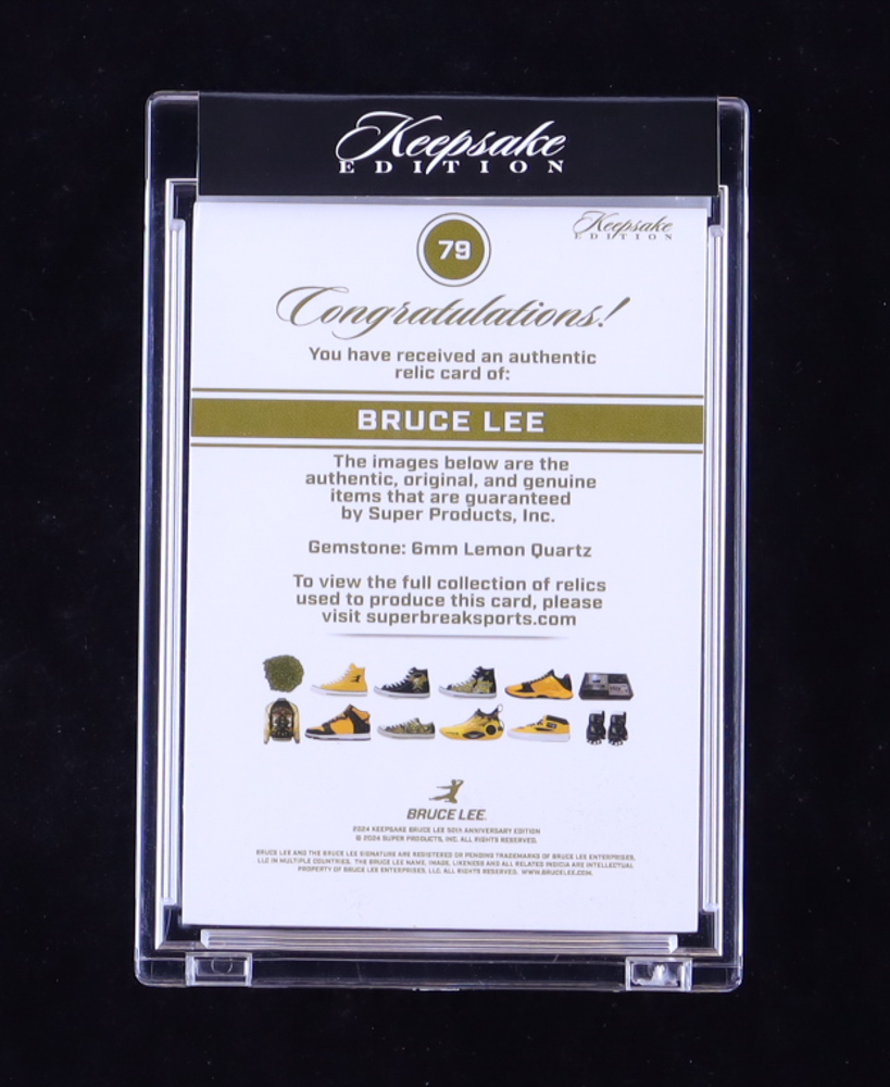 Bruce Lee 2024 Super Break Bruce Lee 50th Anniversary Keepsake Collection Jumbo Relics Black Ice #79 #34/50