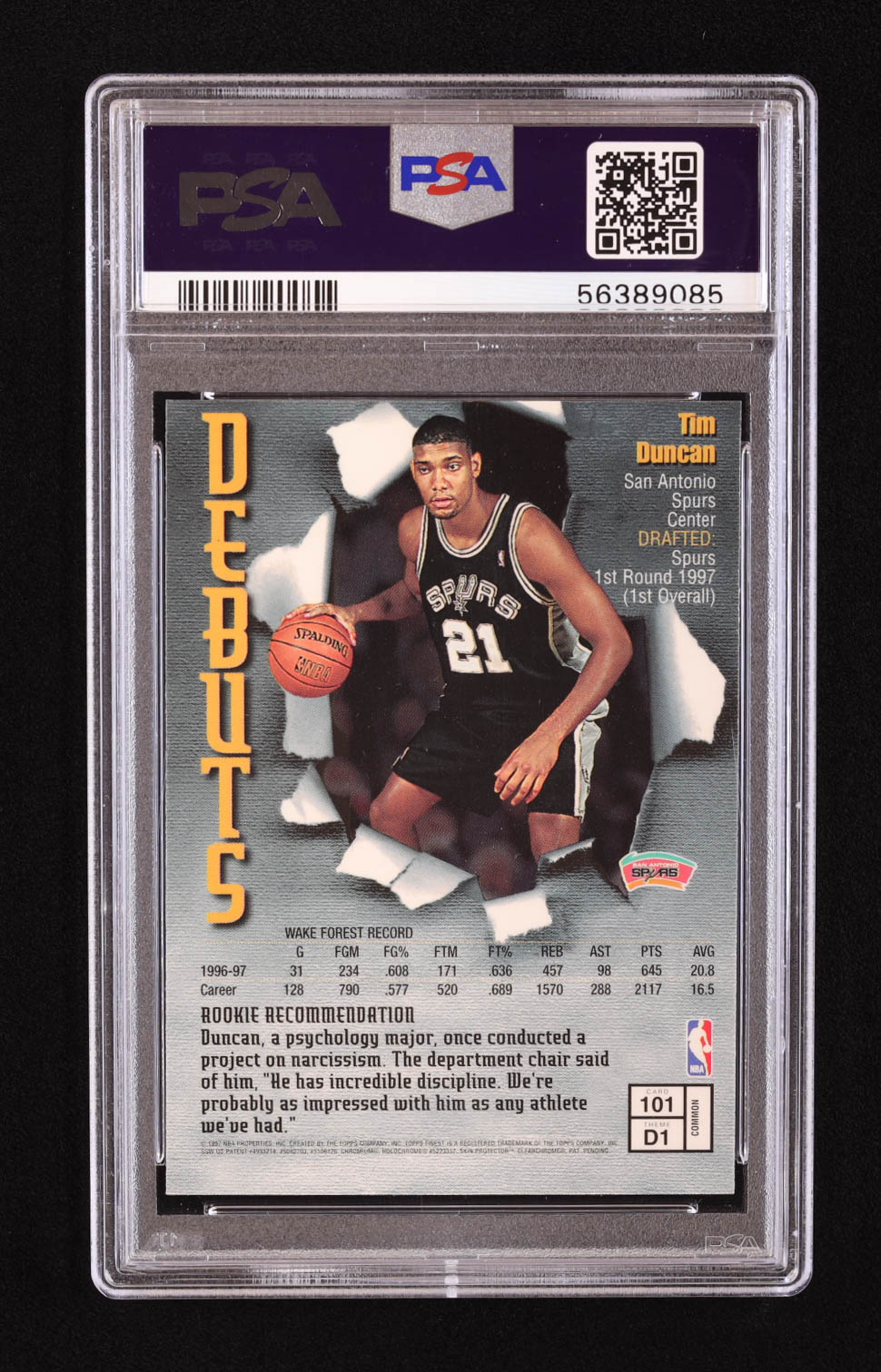 Tim Duncan 1997-98 Topps Finest #101 RC (PSA 10)