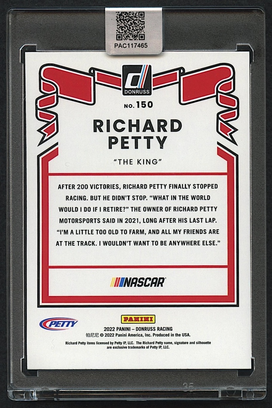 Richard Petty Signed 2022 Donruss #150 Retro (PA Encapsulated)